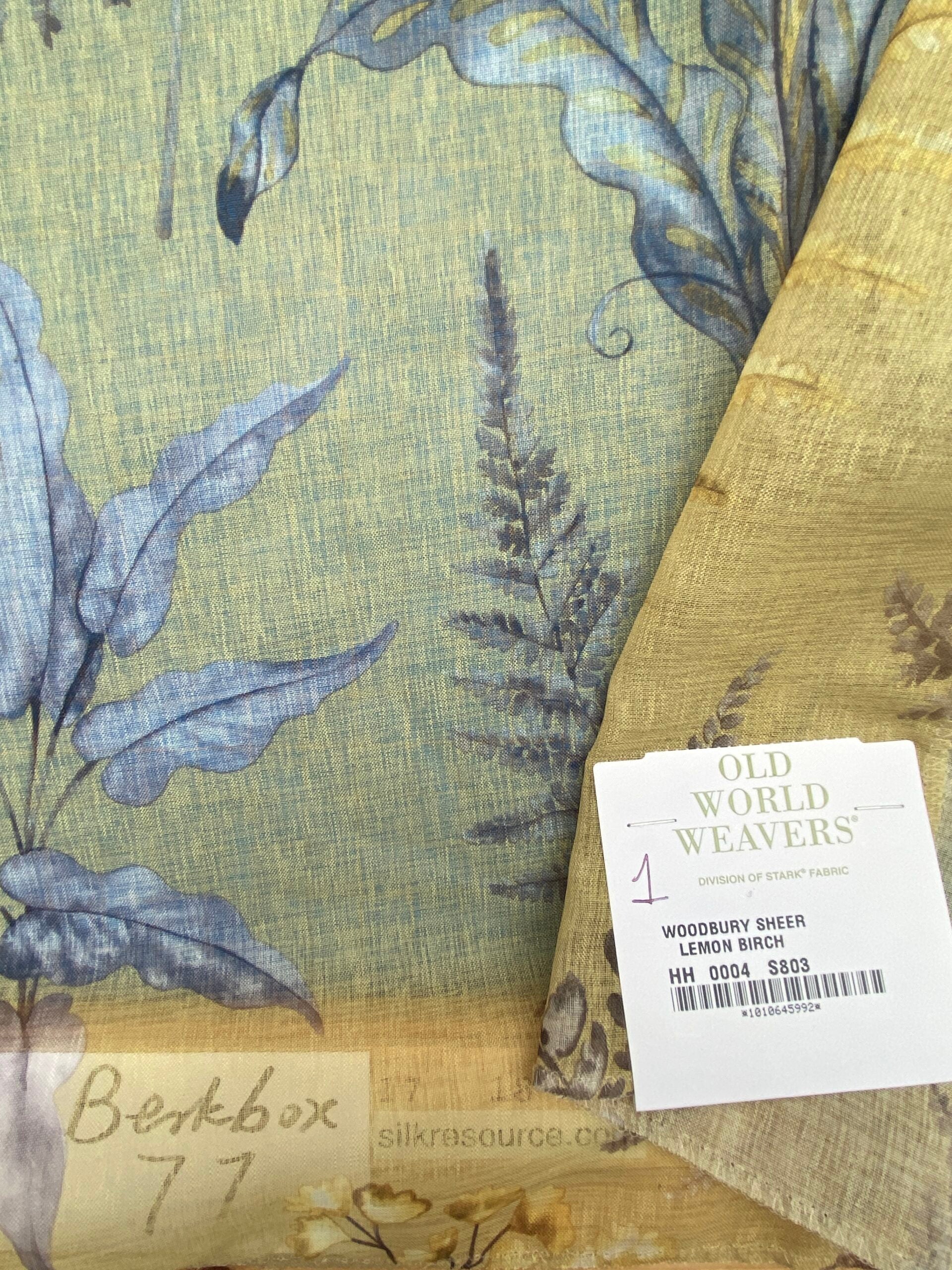 31 Berkbox77 Square Printed Fabrics by Old World Weavers Woodbury Sheer Lemon Birch Yellow Floral Print Sheer MSRP USD 100/