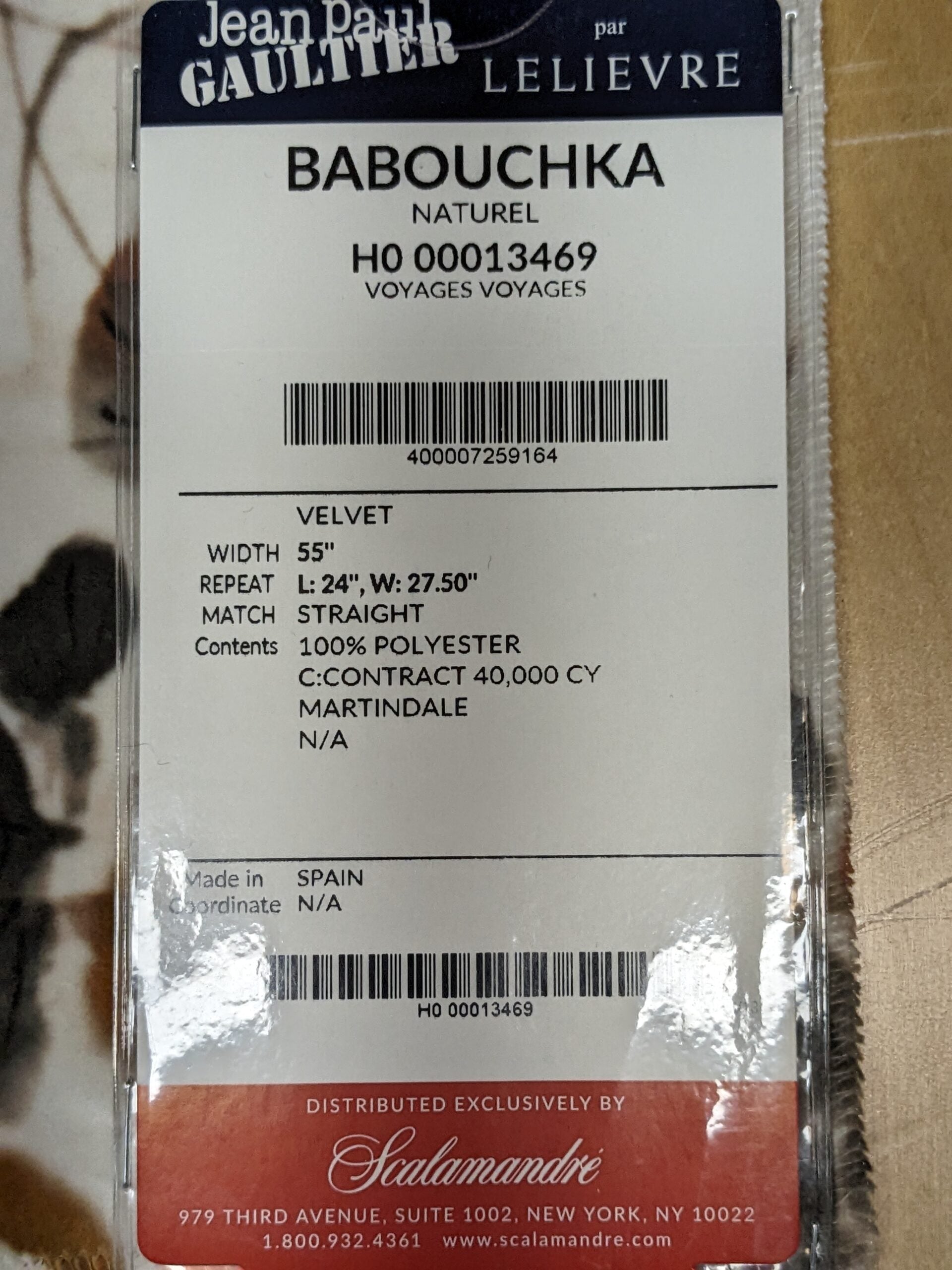 Fiber, repeat, width, weight, country of origin, WHOLESALE price/yard:
