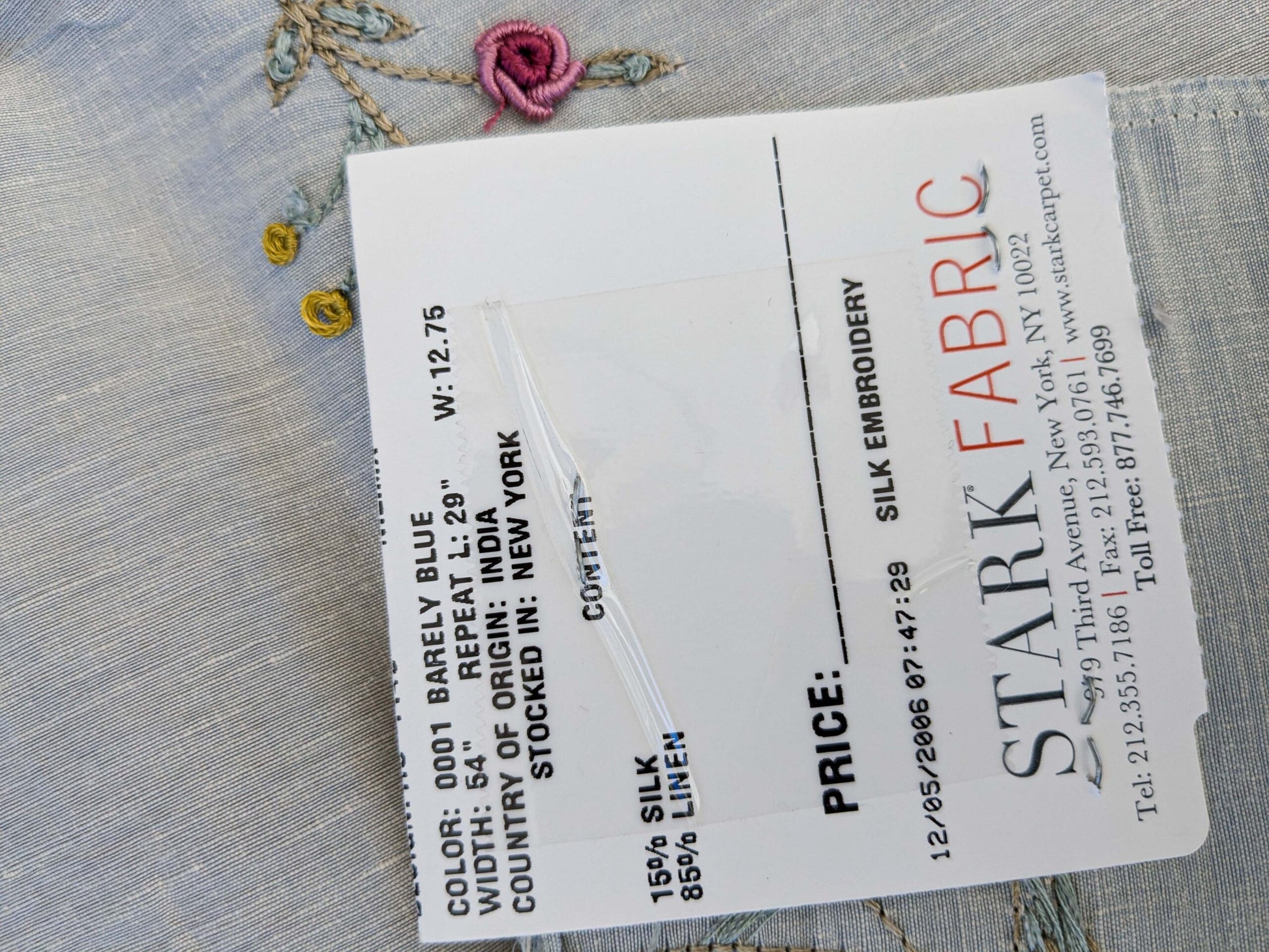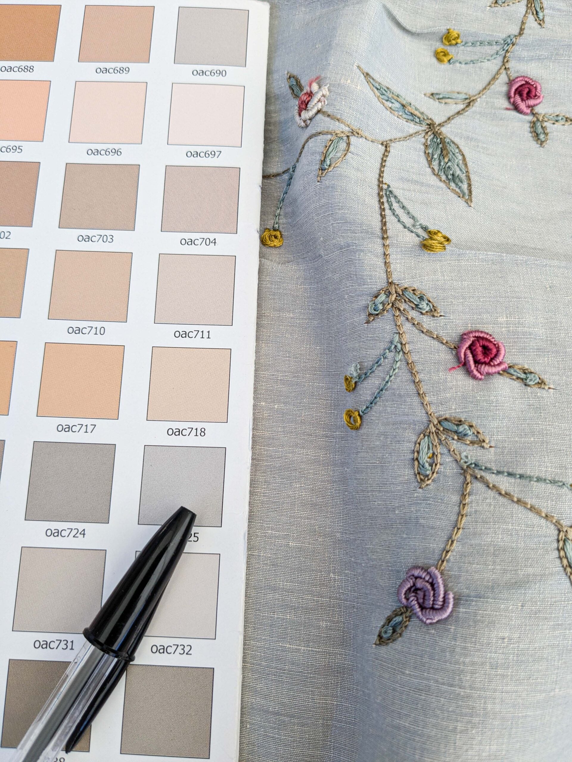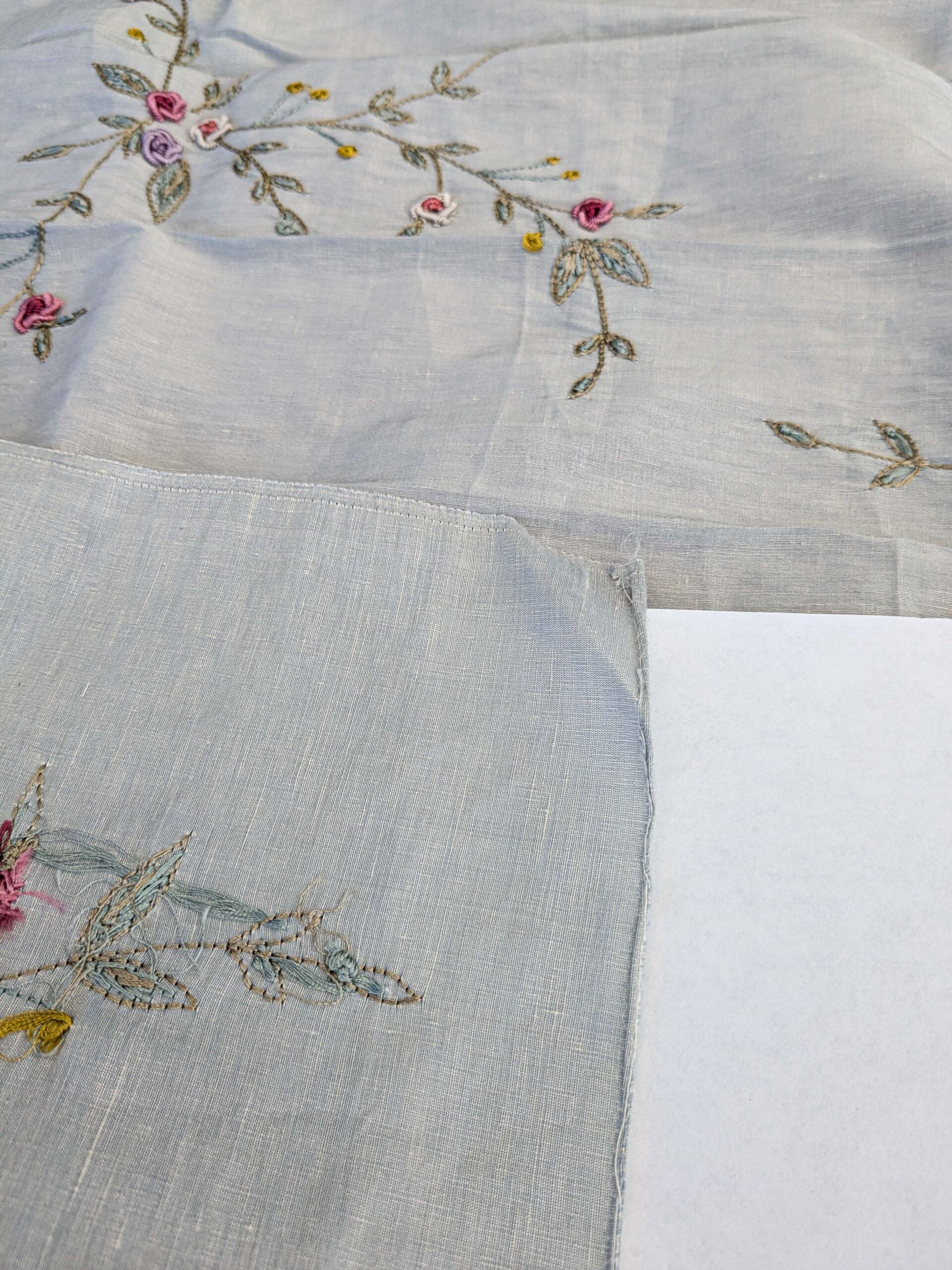 31 EV45 Silk Blend Square 33" x 26" Scalamandre Old World Weavers Nilima Barely Blue Delicate Floral Vine Linen Silk Embroidery