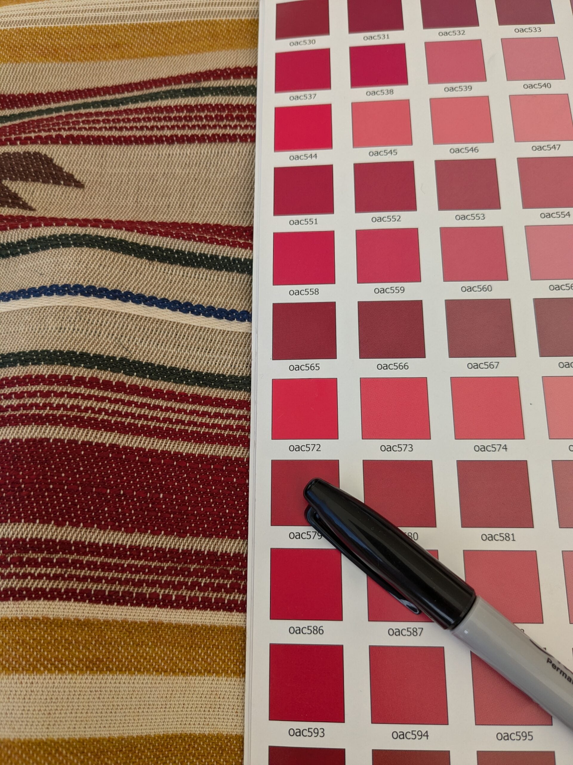 31 EV47 Square Scalamandre Cheyenne Brown Beige Yellow Red Stripe Geometric MSRP USD 300+/y