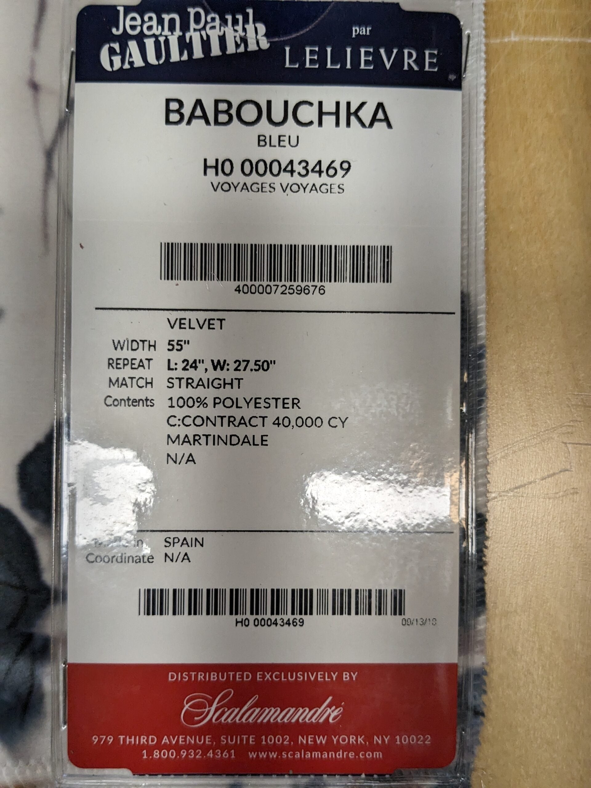 Fiber, repeat, width, weight, country of origin, WHOLESALE price/yard: