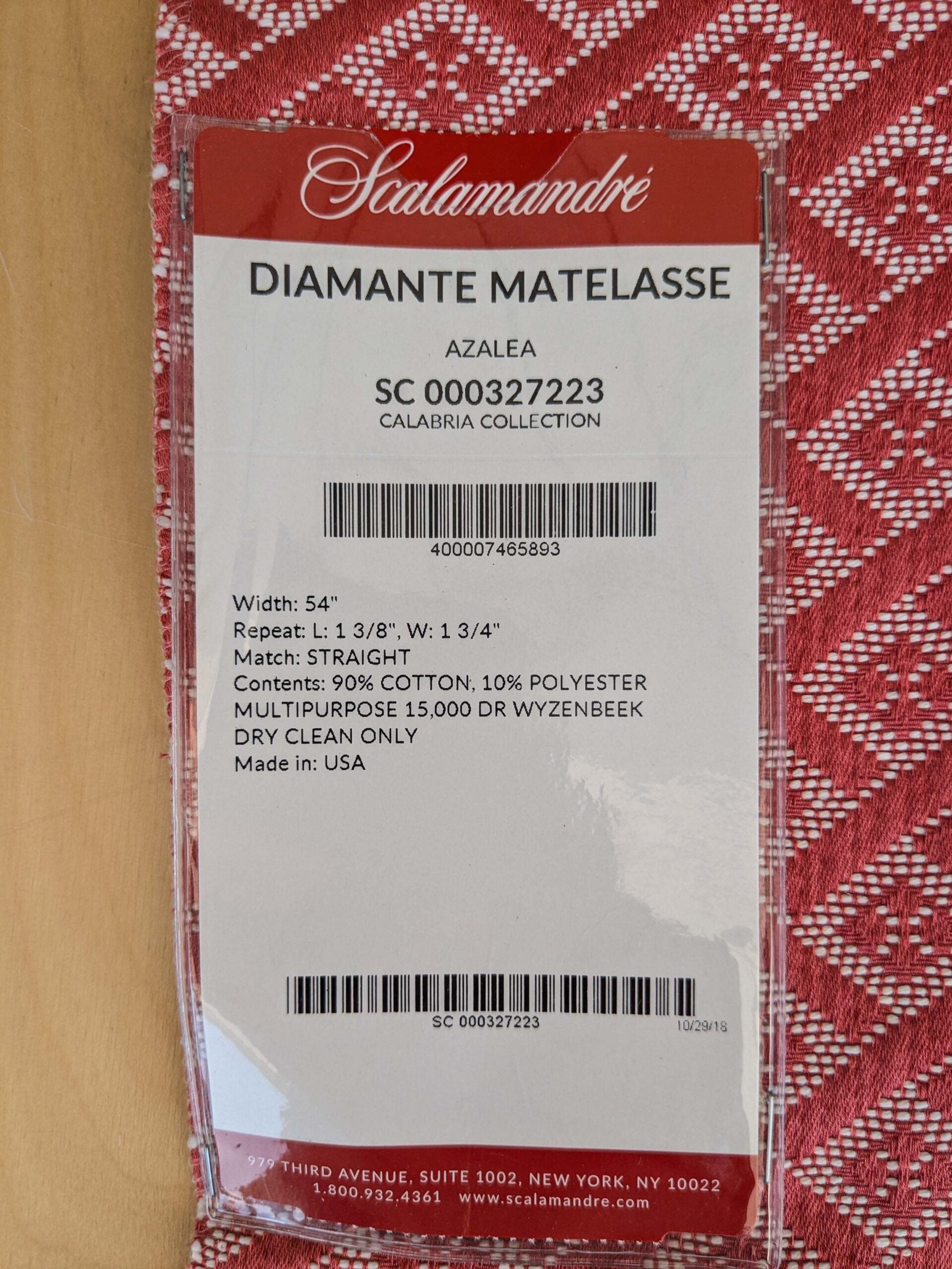 32 EV37 18" x 26" Scalamandre Diamante Matelasse Azalea Red White Cotton Polyester Diamond MSRP USD298/y