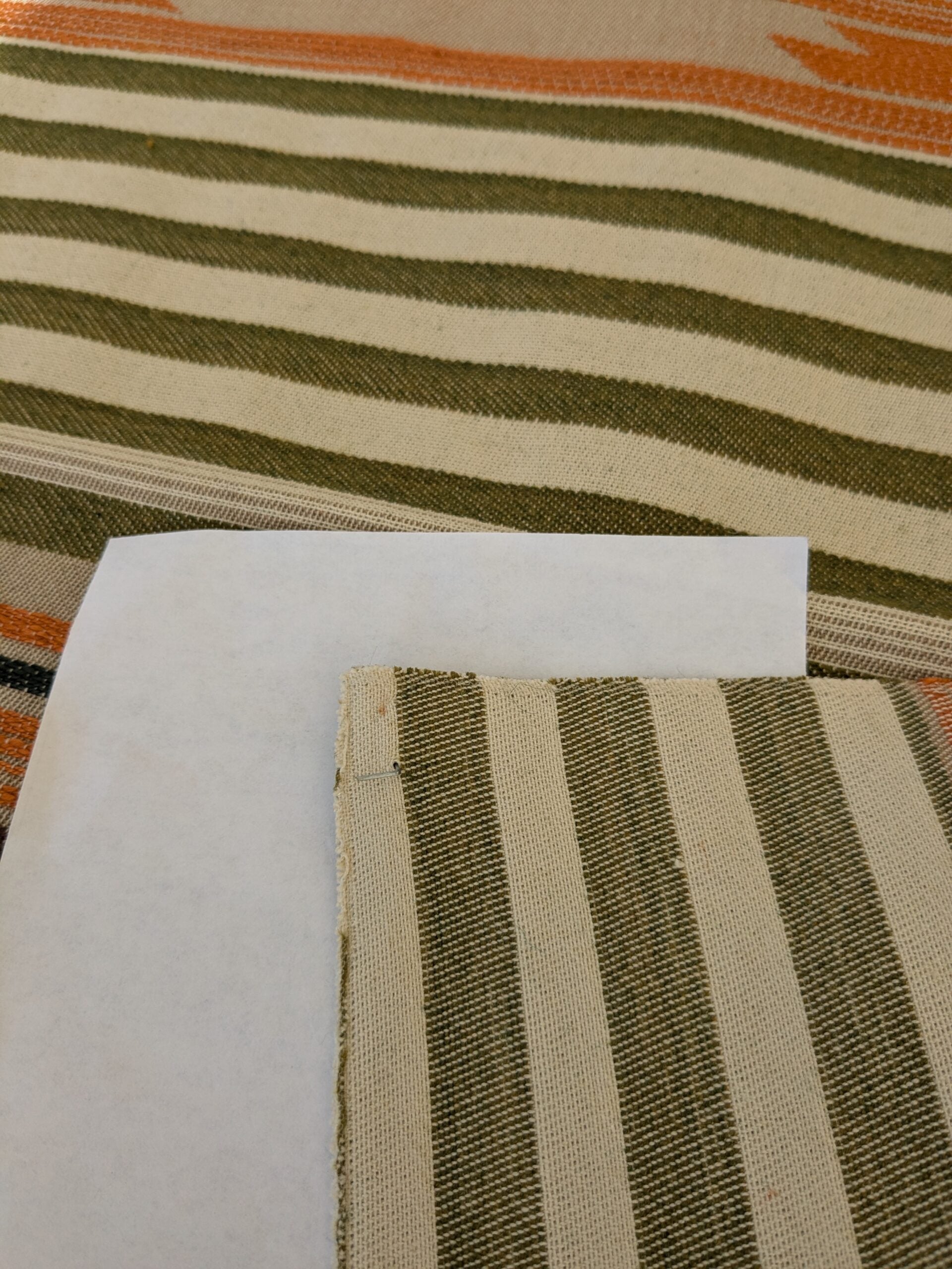 33 EV47 Square Scalamandre Cheyenne Orange Green Brown Beige Stripe Geometric MSRP USD 300+/y