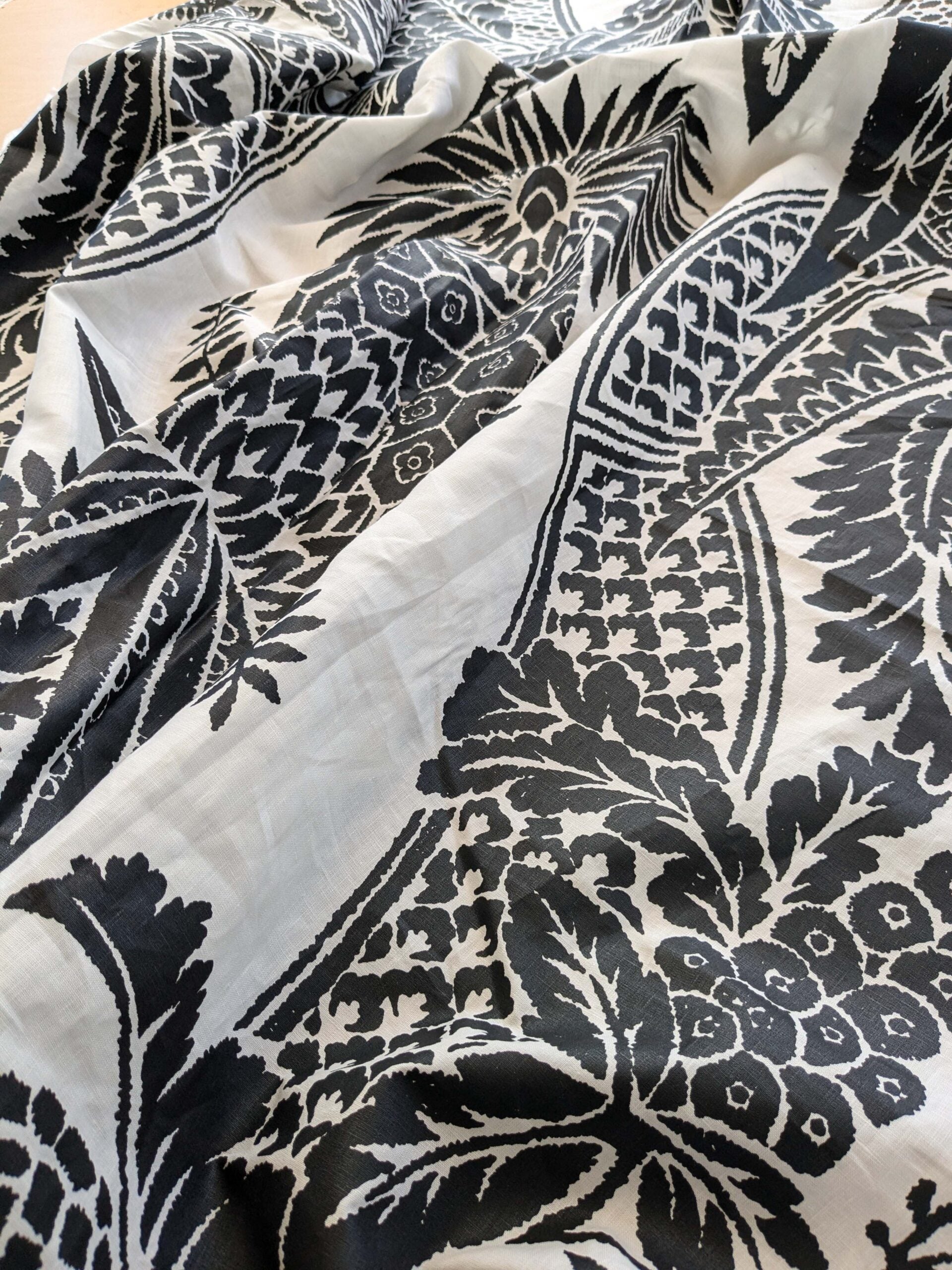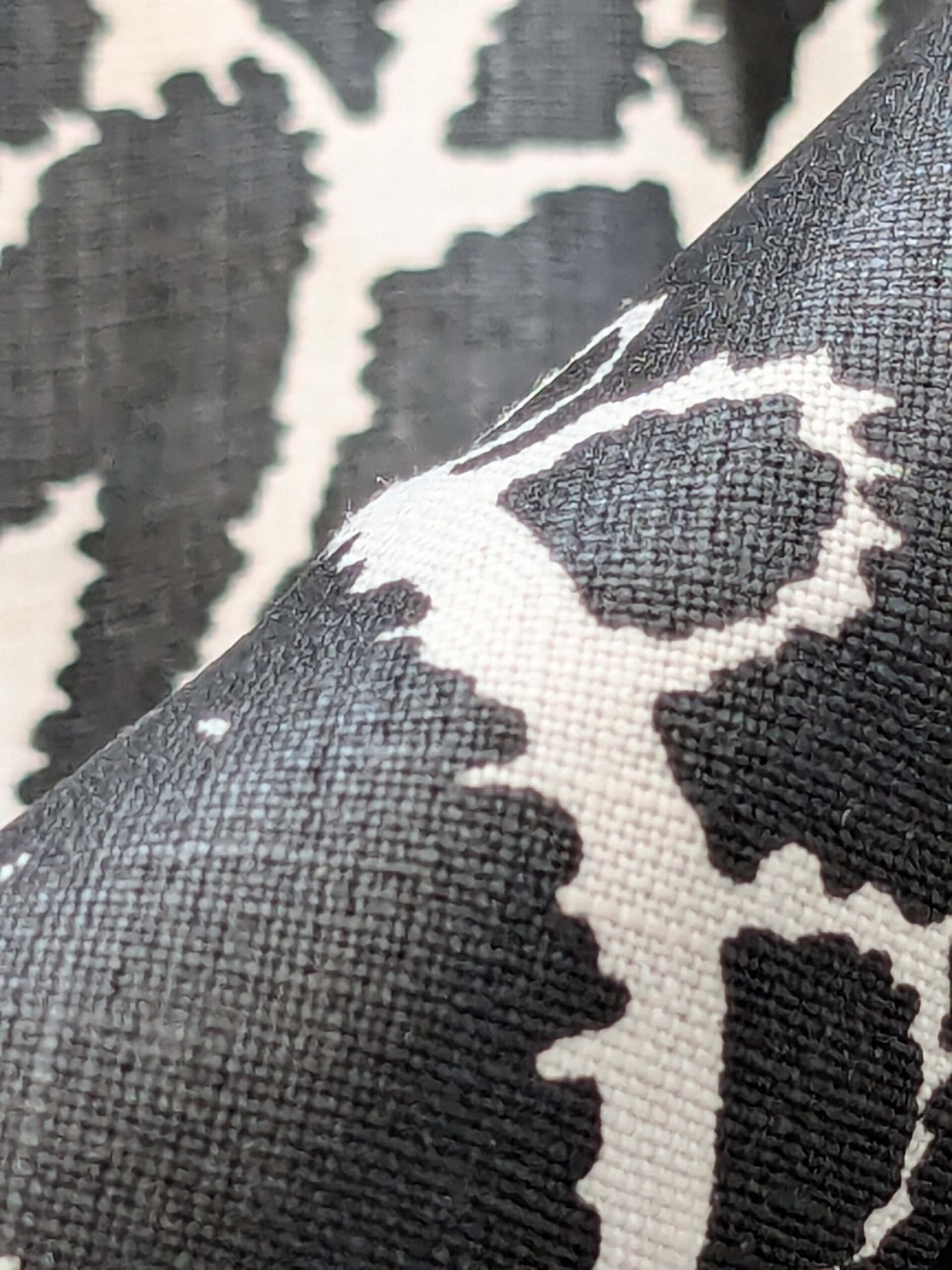 33 EV38 Scalamandre East India Bianco Nero Black White Printed Linen Damask 2.2y MSRP USD 440/Y