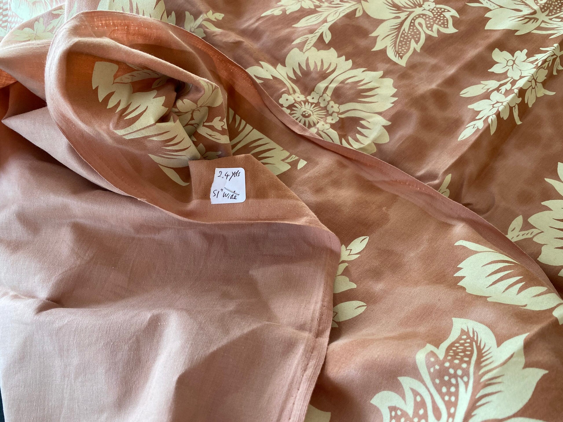 2.4Yards Old World Weavers Lille Flower Rose on Cream Satin Printed Cotton Fortuny Style in Rose