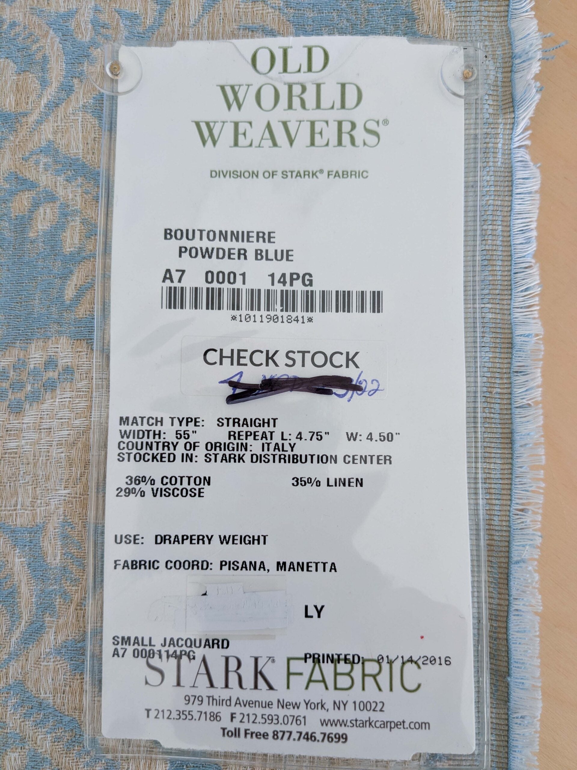 Fiber, repeat, width, weight, country of origin, WHOLESALE price/yard: