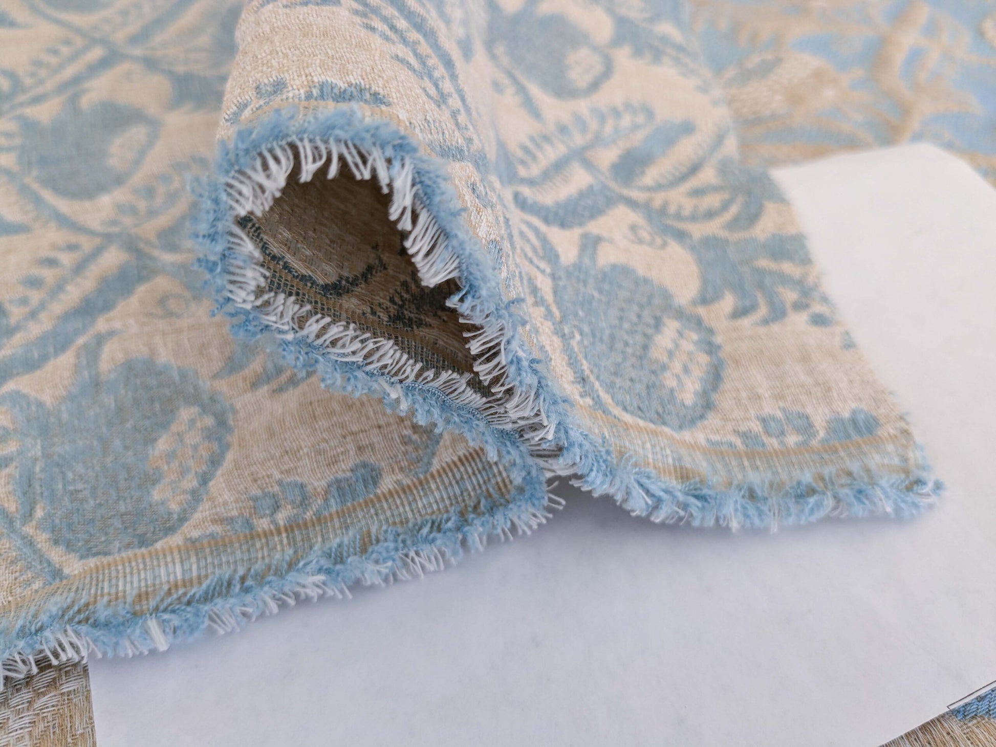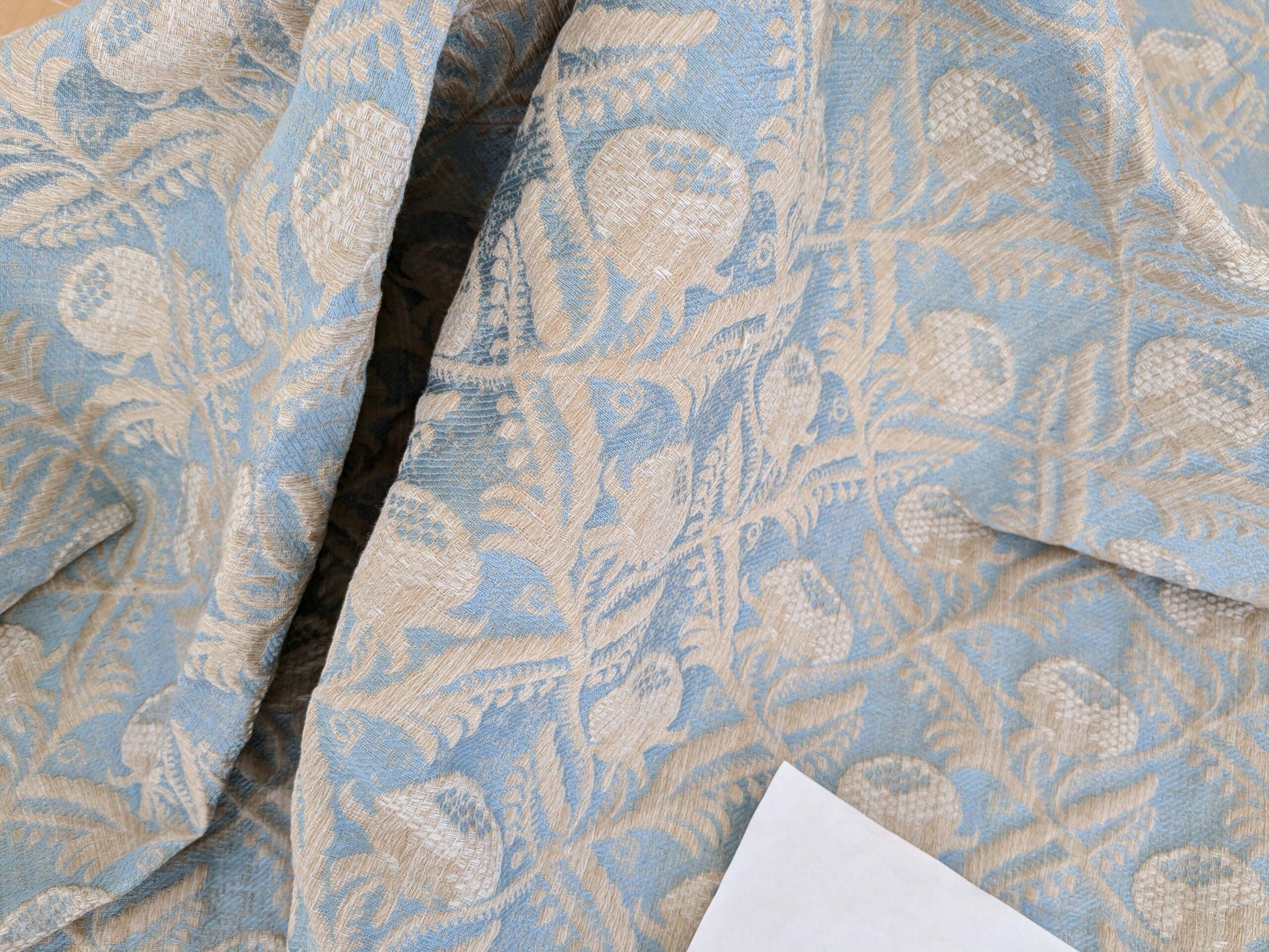 1.2y x 55"w Scalamandre Boutonniere Powder Blue Renaissance Small Scale Berry Pomegranate Jacquard Cotton Linen MSRP USD 402/y 34-Ev49