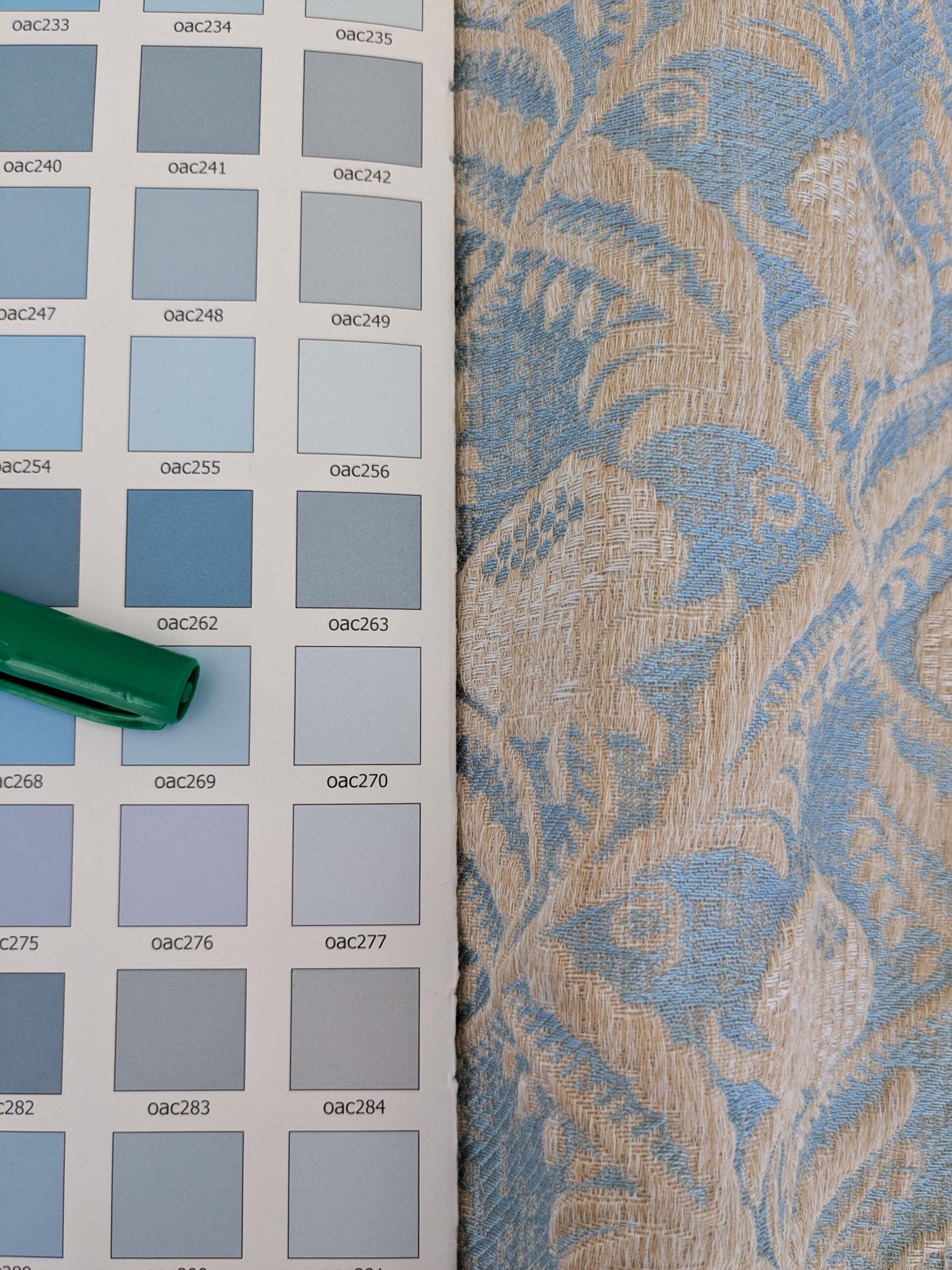 Delicate in pattern but substantial in weight. At around 1lb/yard, this is a heavy jacquard.