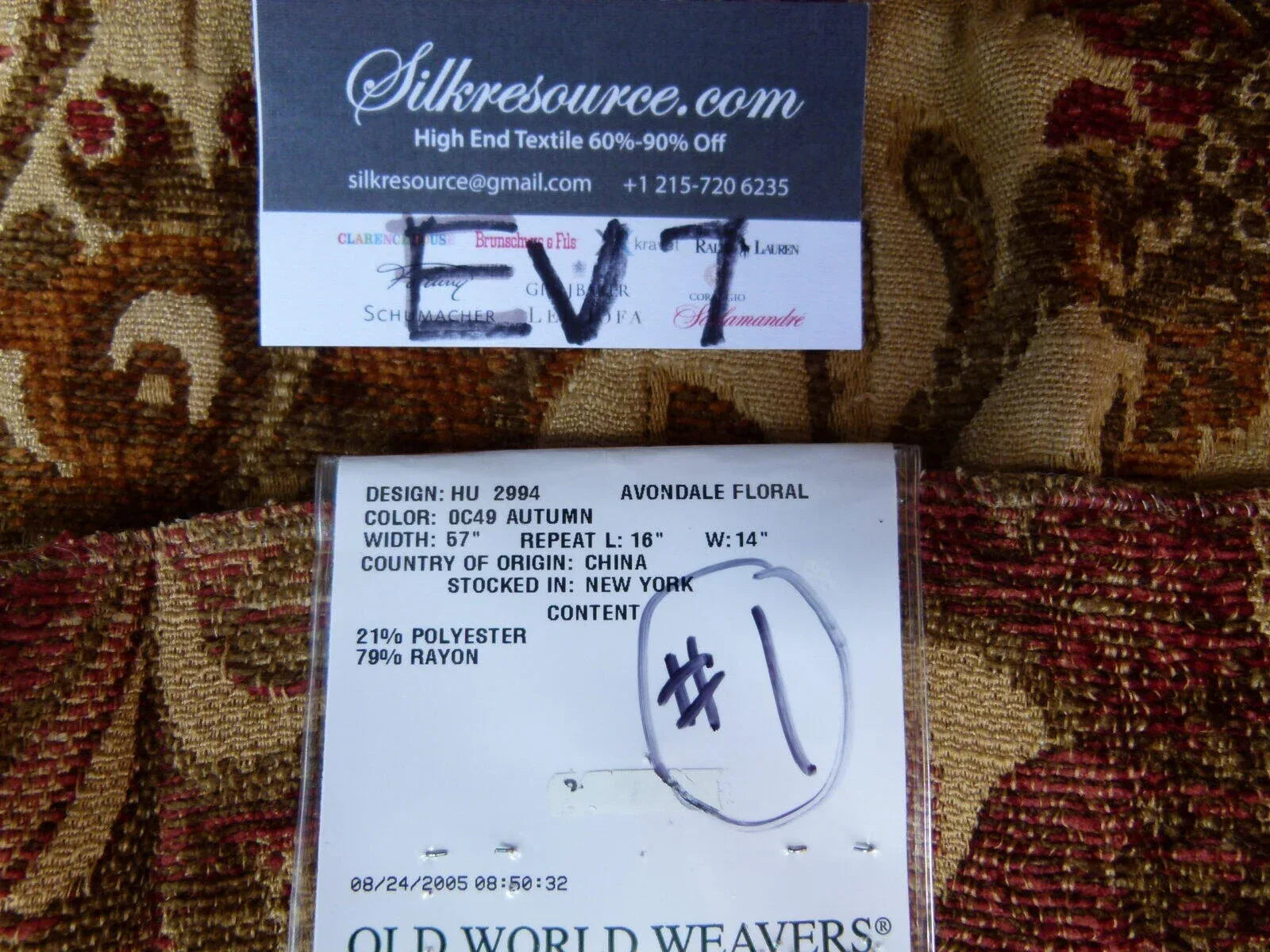 Fiber, repeat, width, weight, country of origin, WHOLESALE price/yard: