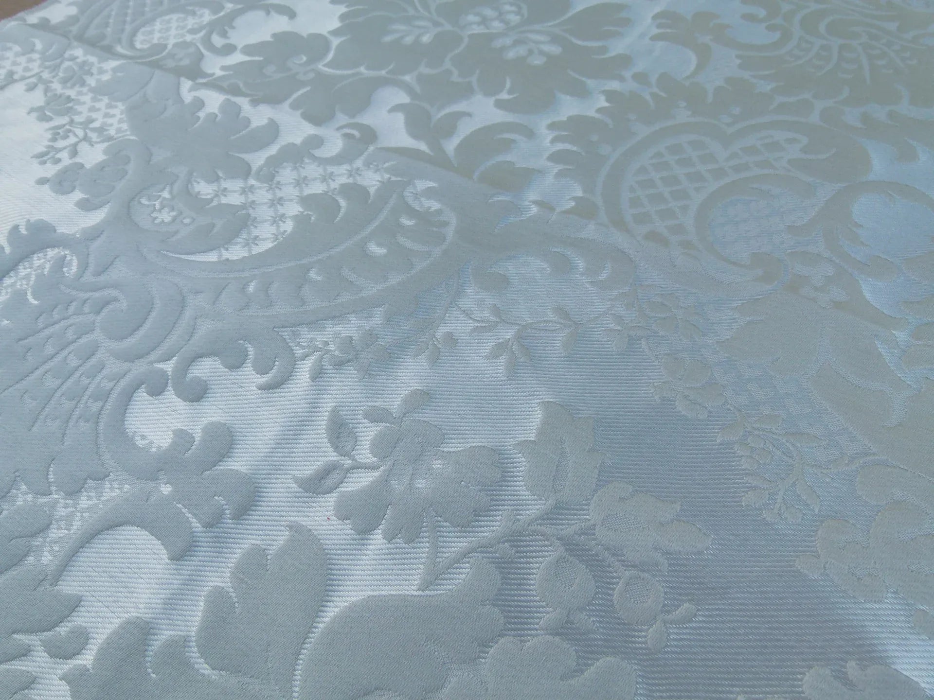A Rococo style brocatelle, typical of the taste of the second half of the 19th century. During this period the styles of the past were reinterpreted. The large shell and floral motifs are highlighted with small details to give it the style characteristic of the 19th century. This fabric reflects the wealthy, bourgeois spirit reigned over by King Louis-Philippe, known as the "citizen King".