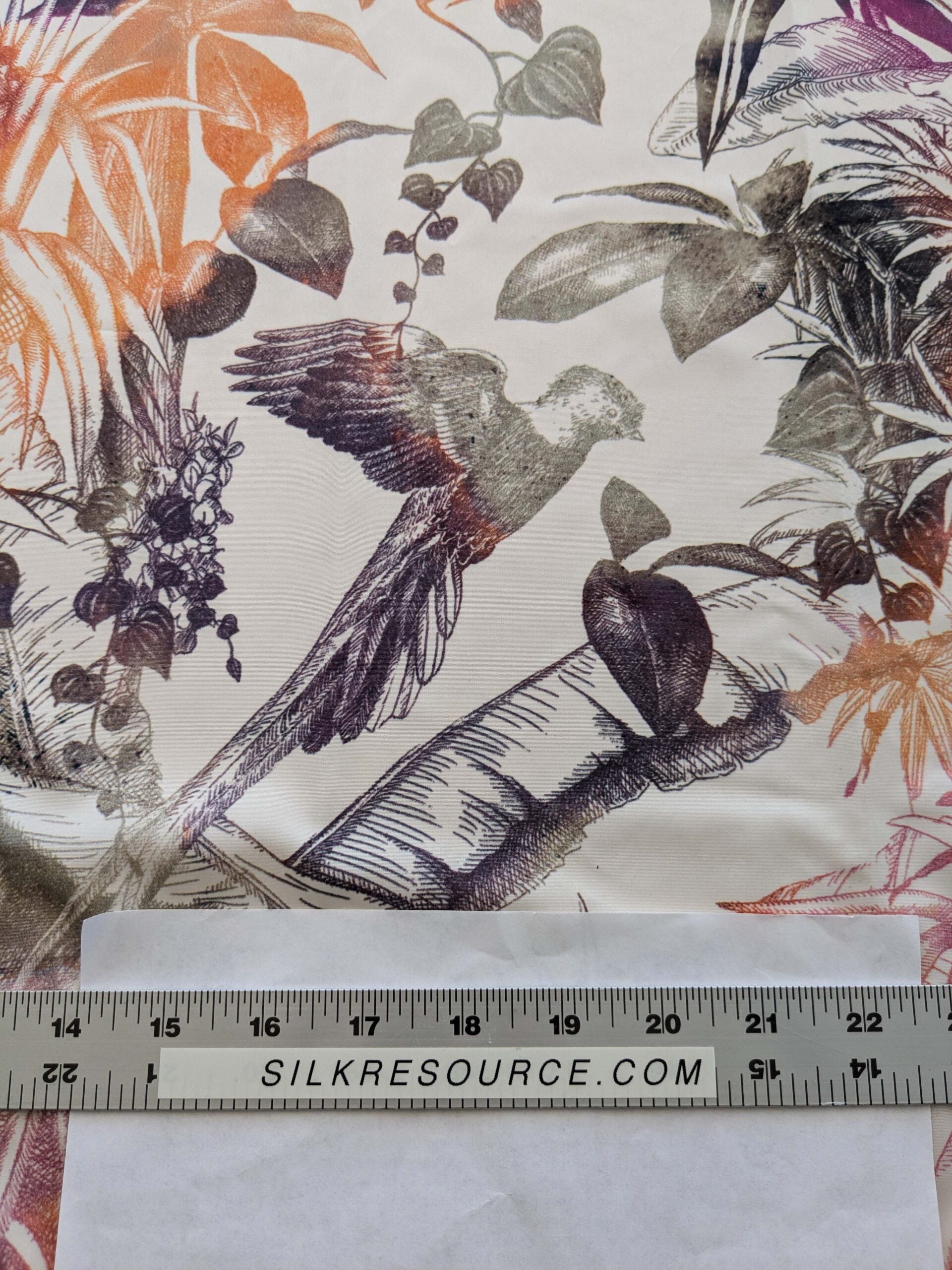 38 EV38 1.2y Fischbacher Benu Splash Citrus Berry Orange Pink Blue White Jungle Bird Floral Print Polyester MSRP USD 300+/y