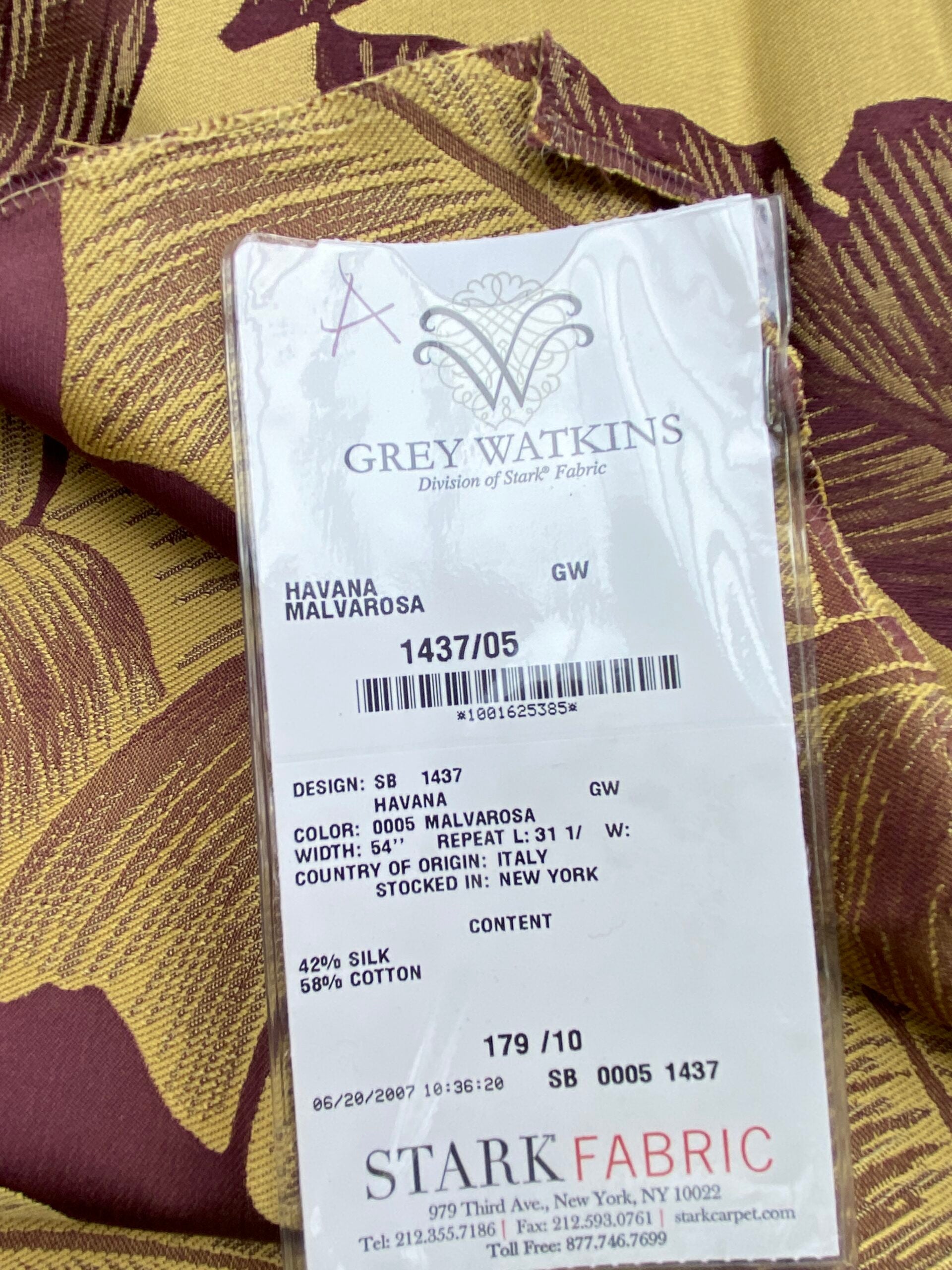 100% silk or silk blend by Scalamandre, Old World Weavers, Grey Watkins and more.