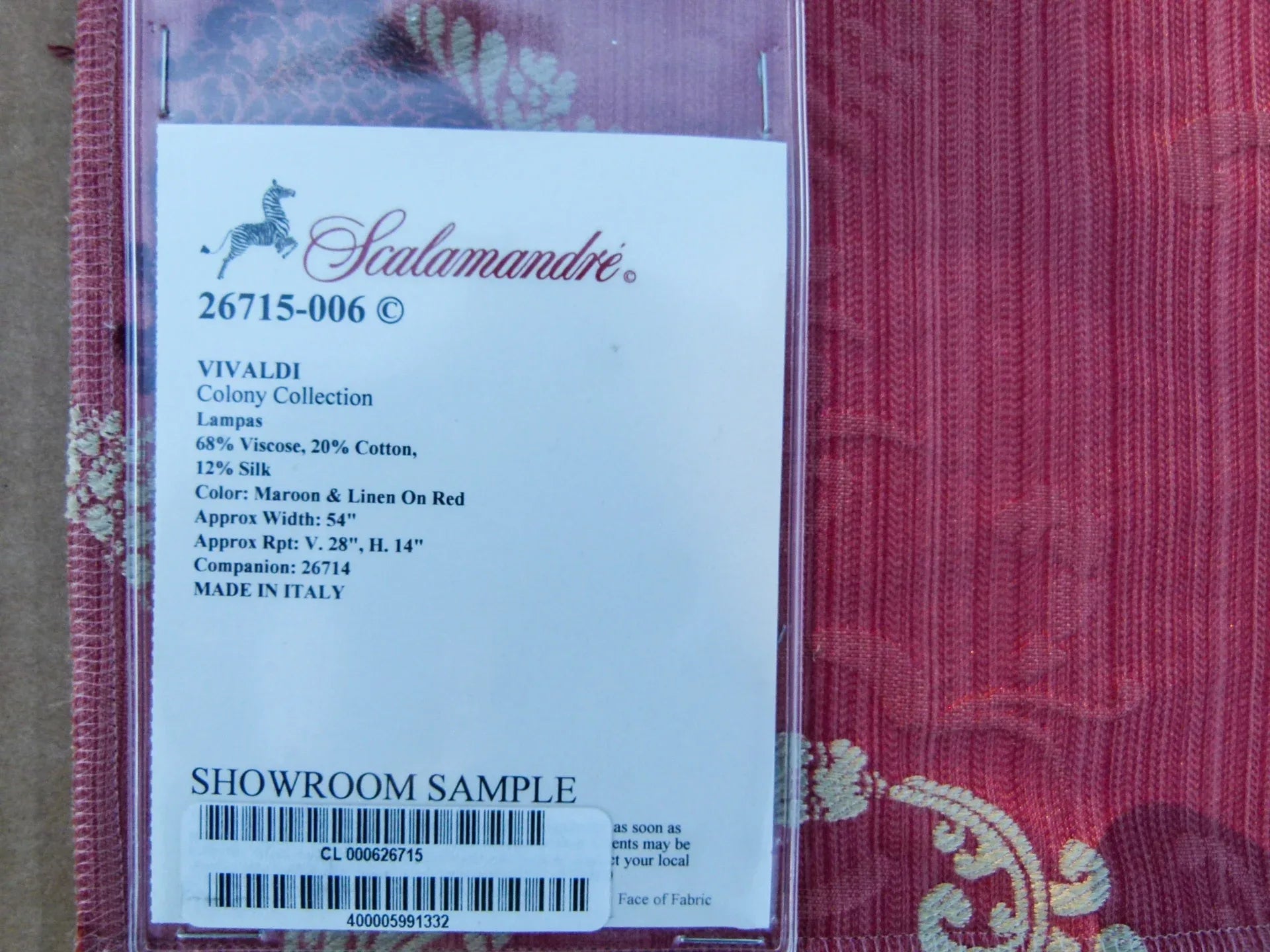 38 EV32 Square 34 x 23 inches Scalamandre Vivaldi Maroon & Linen On Red Lampas MSRP USD 578/y