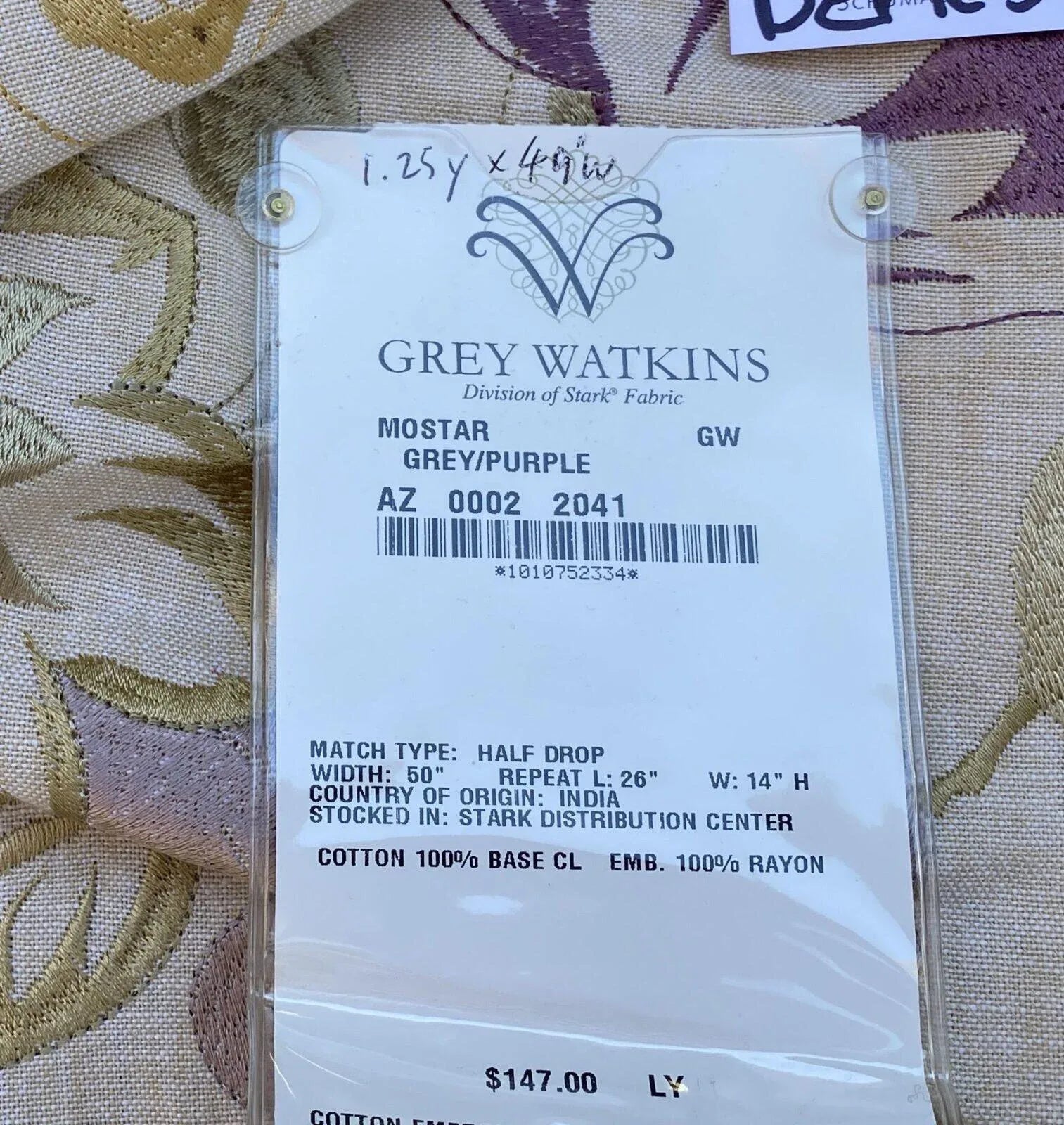 4 Berkbox37 Length Scalamandre Mostar Grey Purple Flower Power Embroidery 1.25y MSRP USD 294/Y