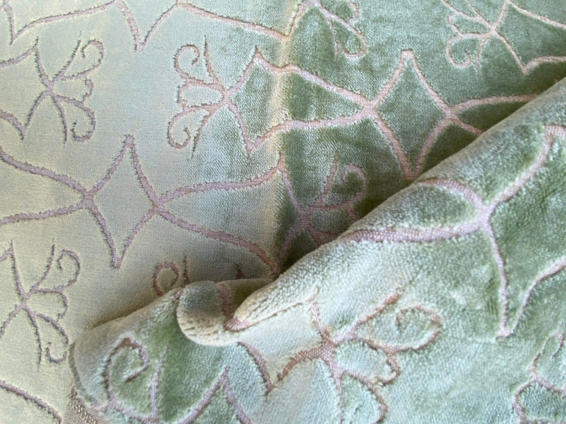 4 Berkbox74 Square Velvet by Old World Weavers Princess Aida Bamboo Green Cut Velvet Silky MSRP USD 265/Y