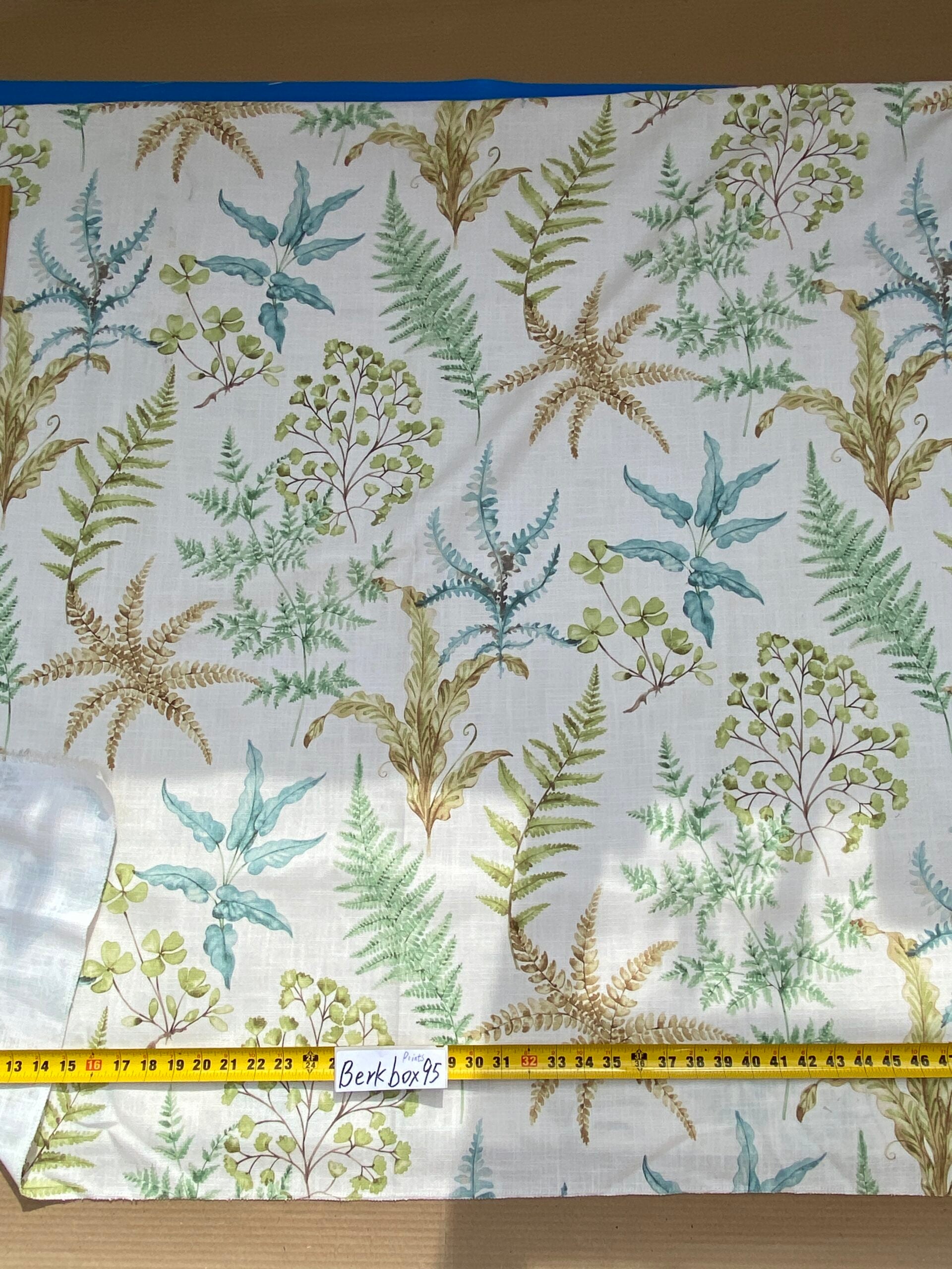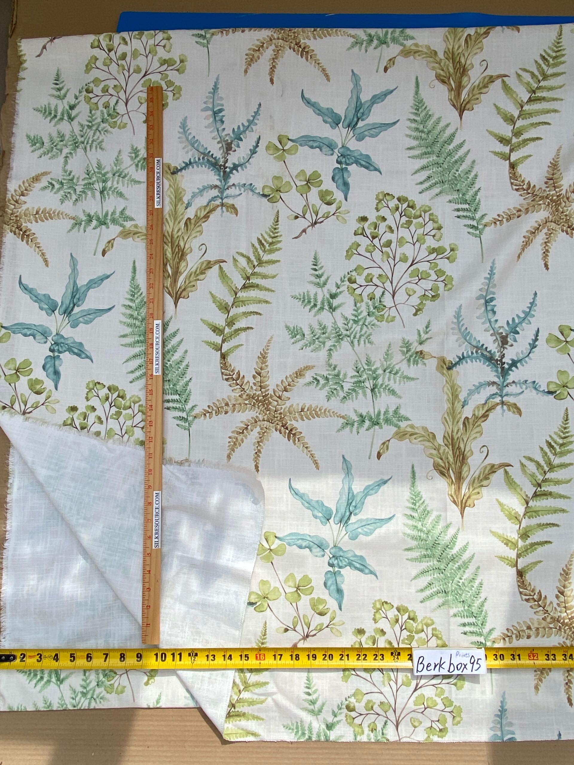 4 BerkBox95 Printed Fabrics by Old World Weavers 2.4Y Wethersfield Fern Spring Tropical White Green Blue