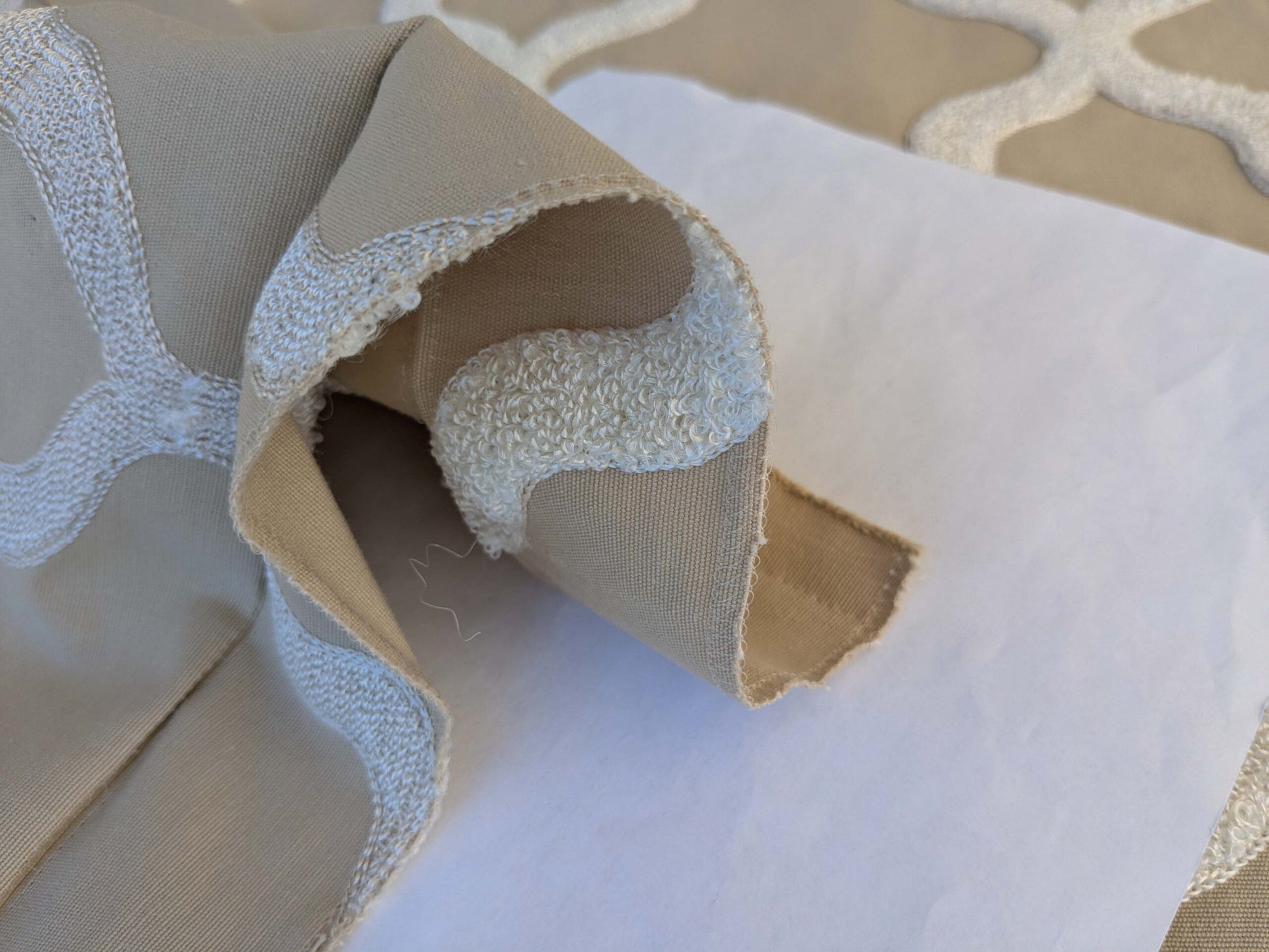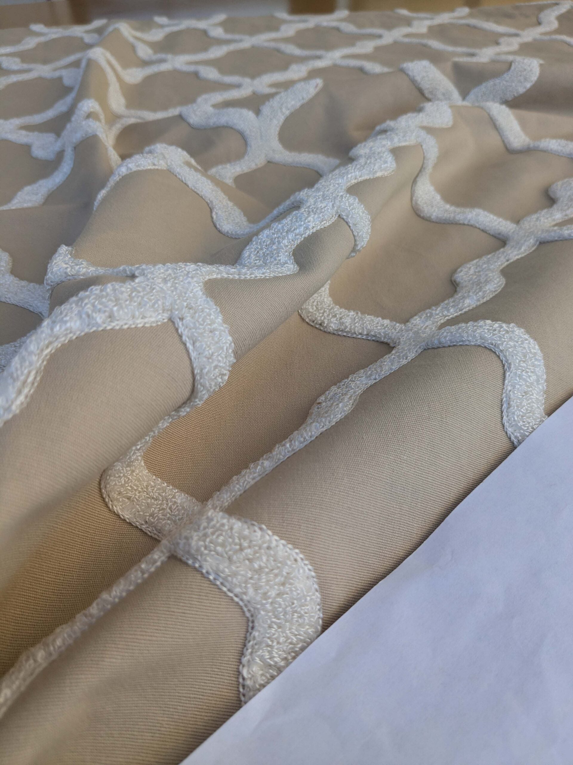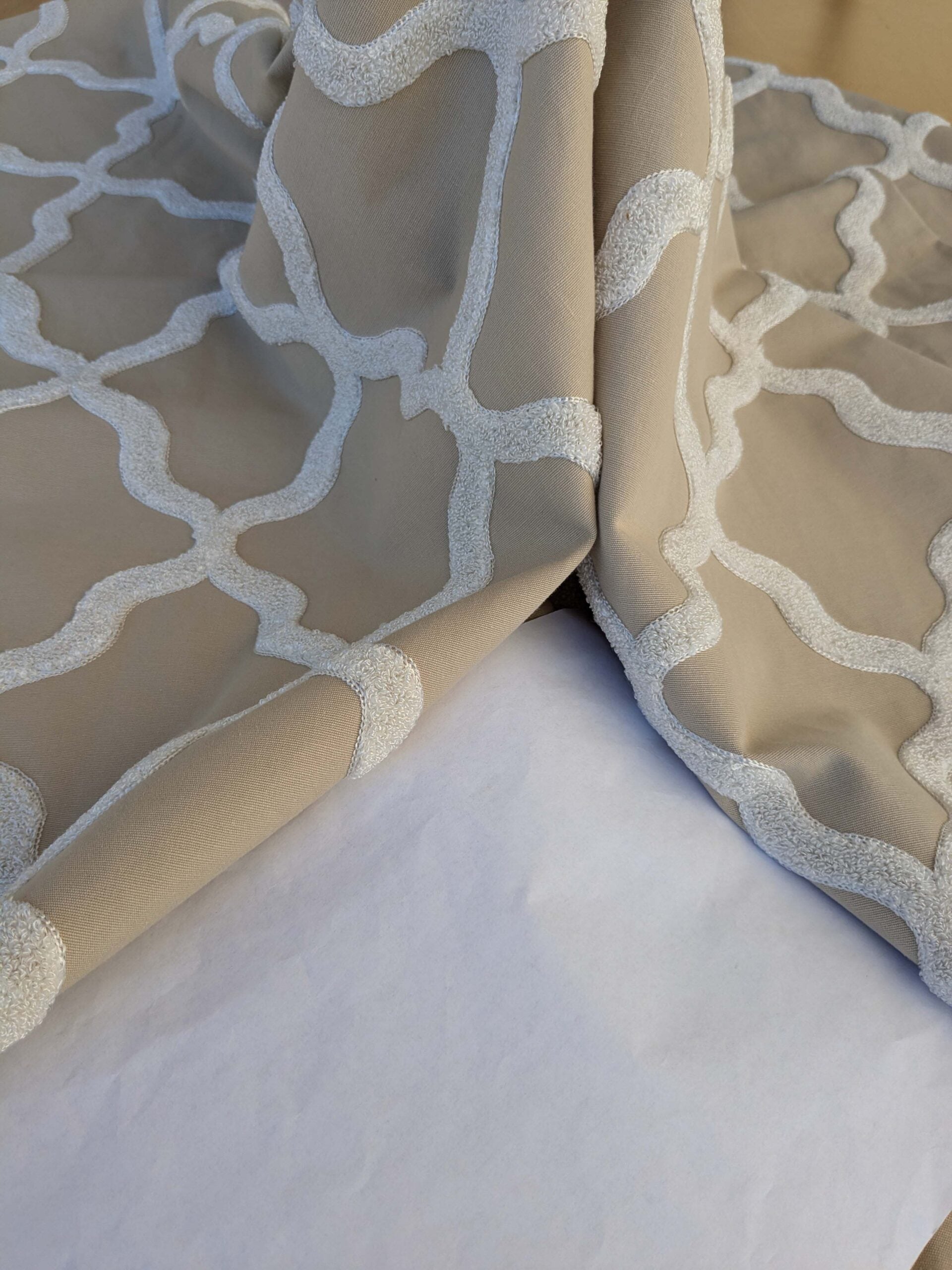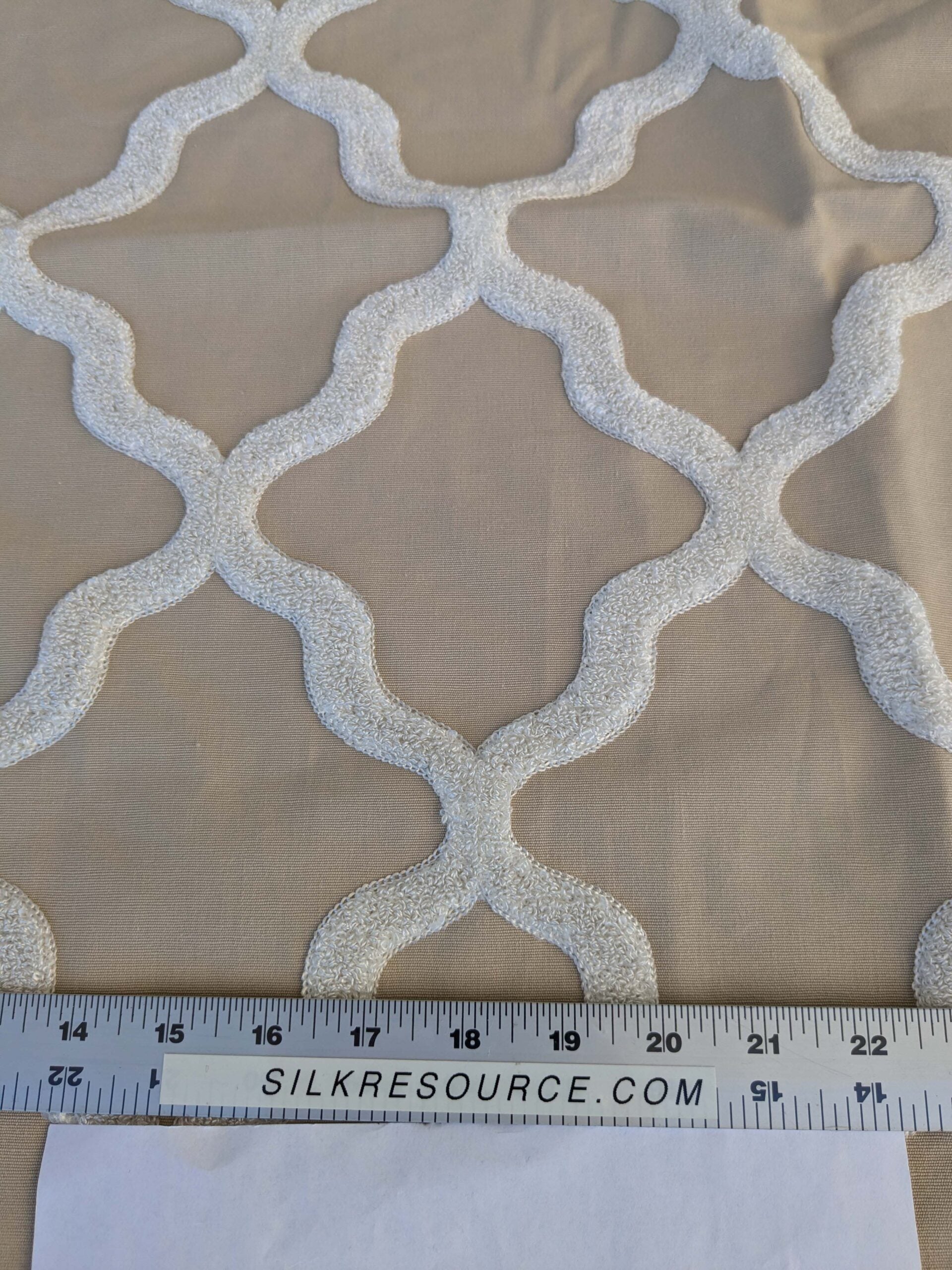 4 EV44 1.2y x 54" Scalamandre Fonthill Astley Boucle Biscuit Brown White Cream Diamond Ogee MSRP USD 338/Y