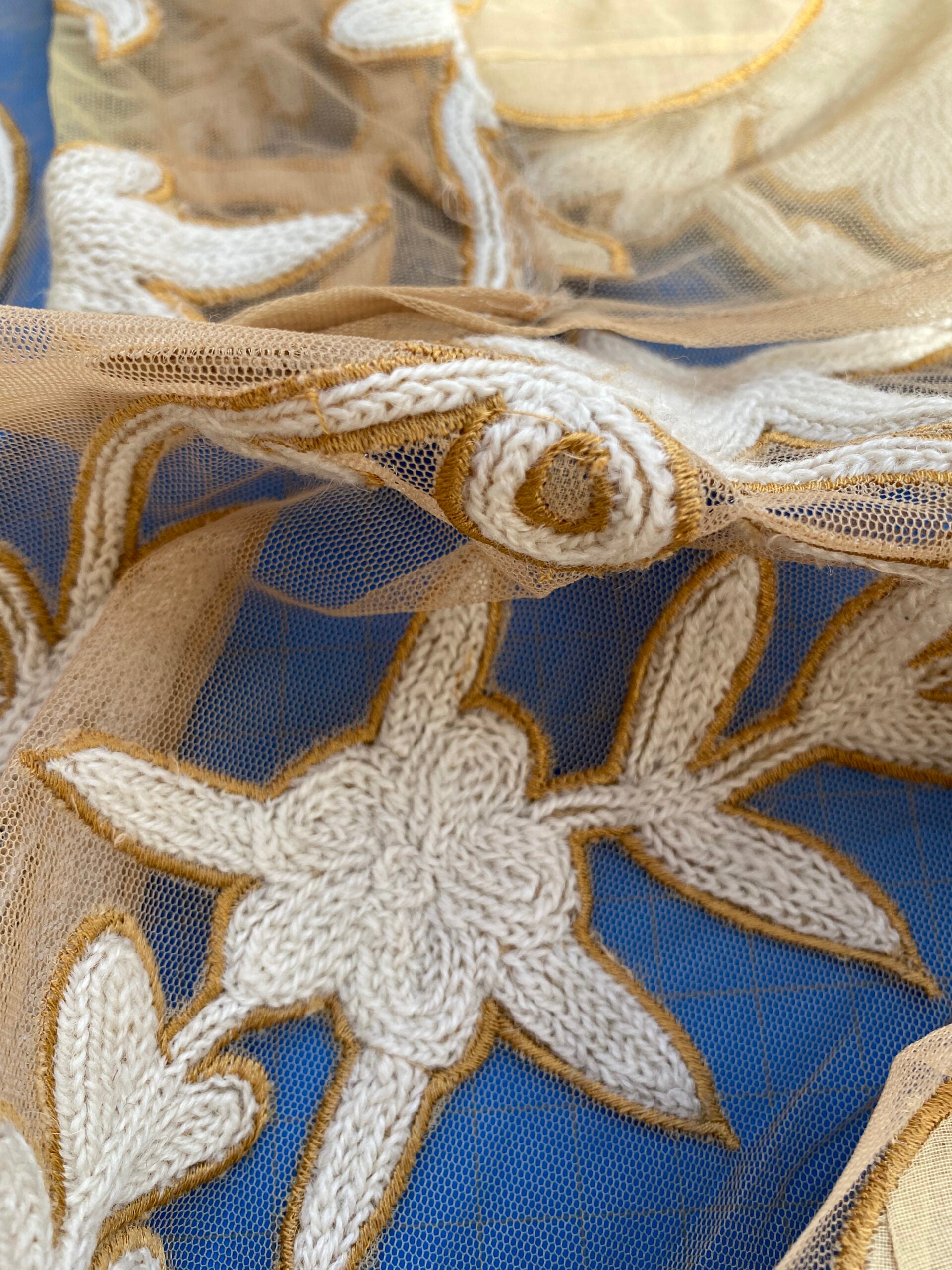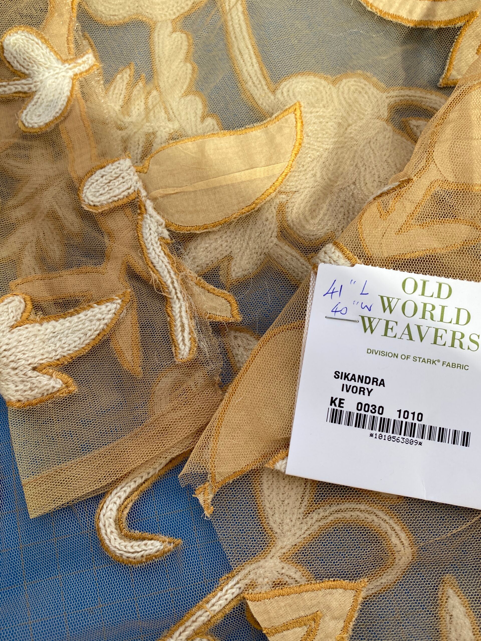 38 Berkbox75 Square Embroidery by Old World Weavers Sikandra Ivory Sheer 41" x 40" MSRP USD 770/Y