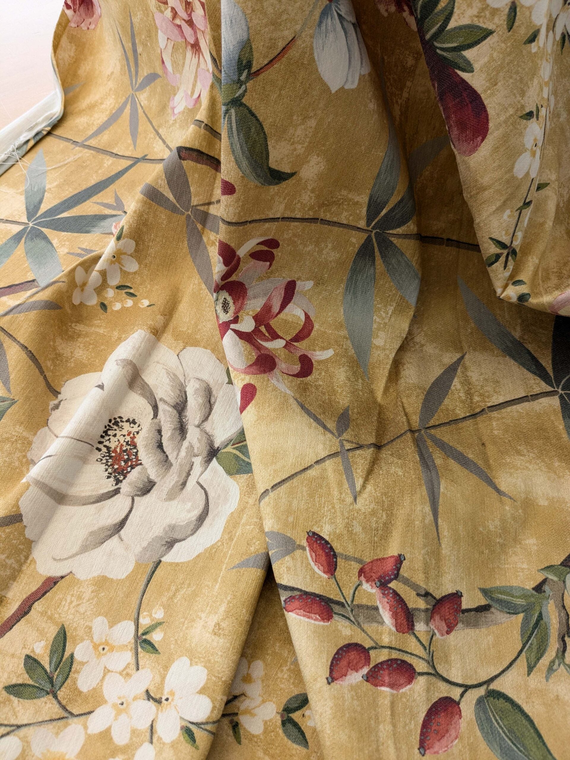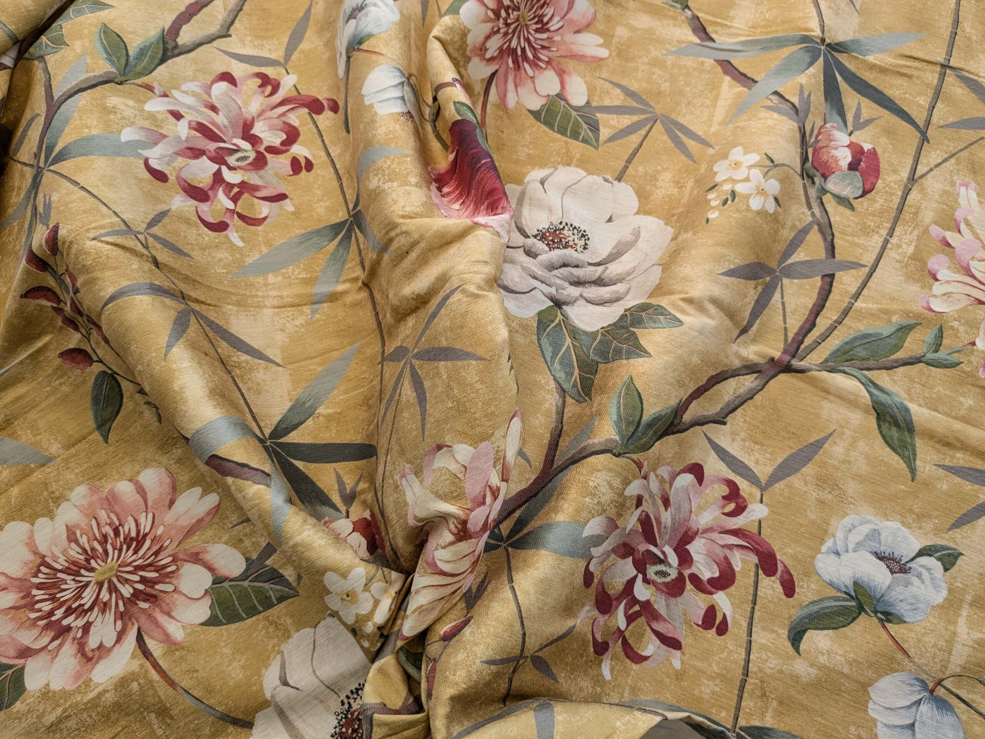 40 EV38 Scalamandre Lelievre Printemps De Chine Yellow Gold Floral Tree Foliage Botanical 1.2y