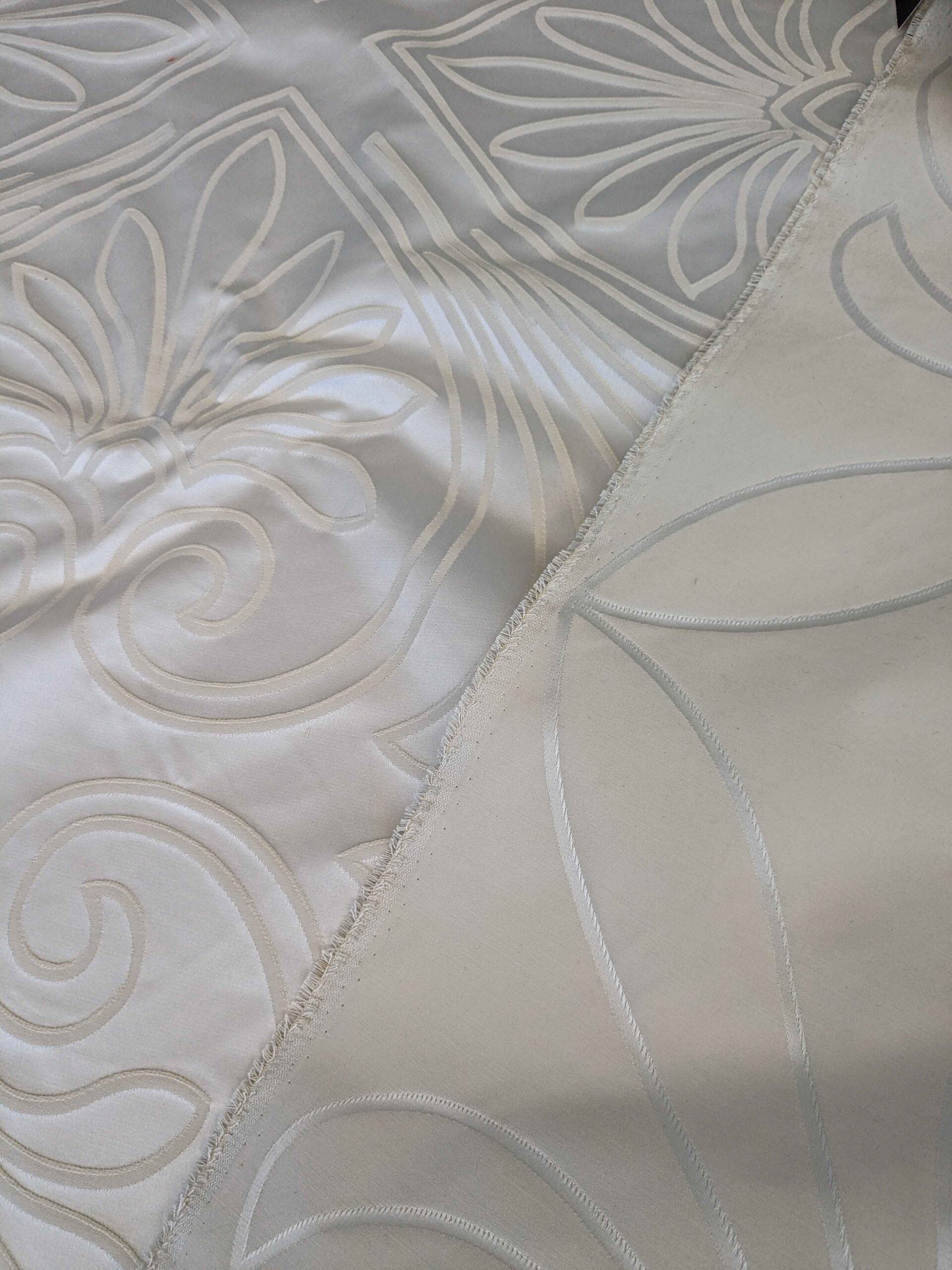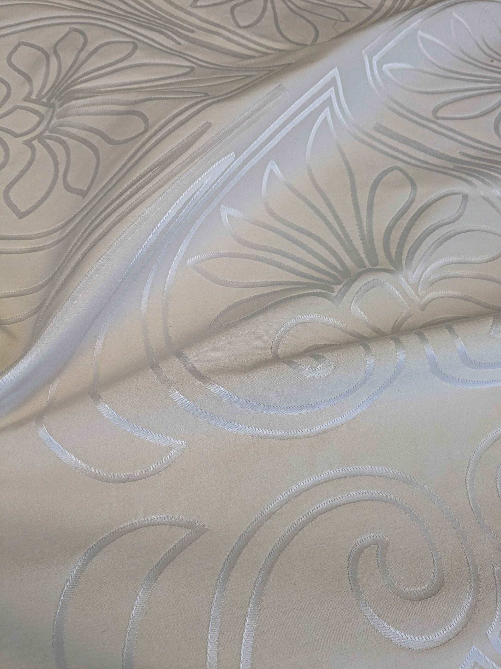 40"Length x 118" Width Lelievre Paris Trefle M1-Ivoire Damask Historic Jacquard Diamond Ogee Graphic White Cream Ivory Polyester