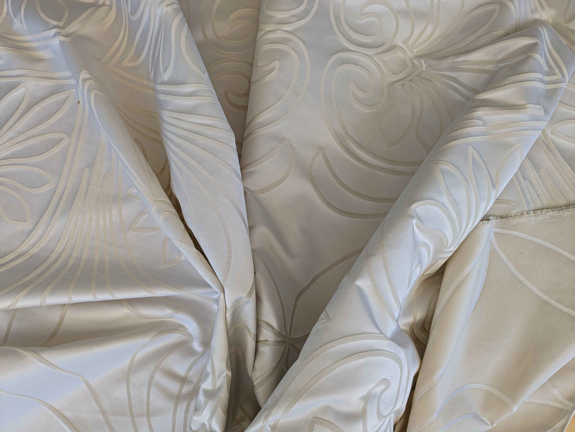 Weight: medium heavy weight silk damask. About 0.5lb/yard. Soft, yet durable enough for upholstery purpose