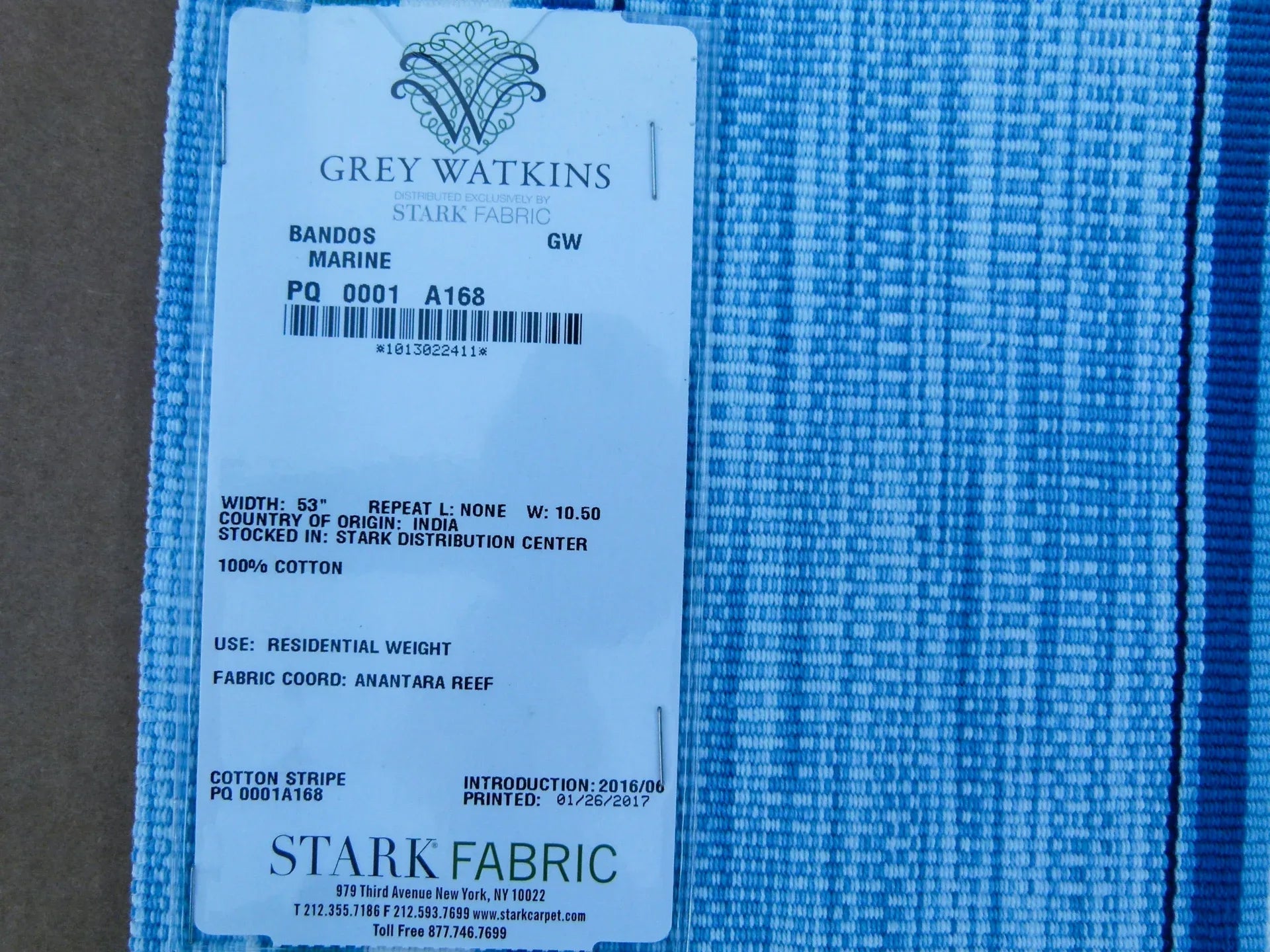 41 EV32 Square 26 x 26 inches Scalamandre Grey Watkins Bandos Marine Cotton Blue Stripe MSRP USD 182/y