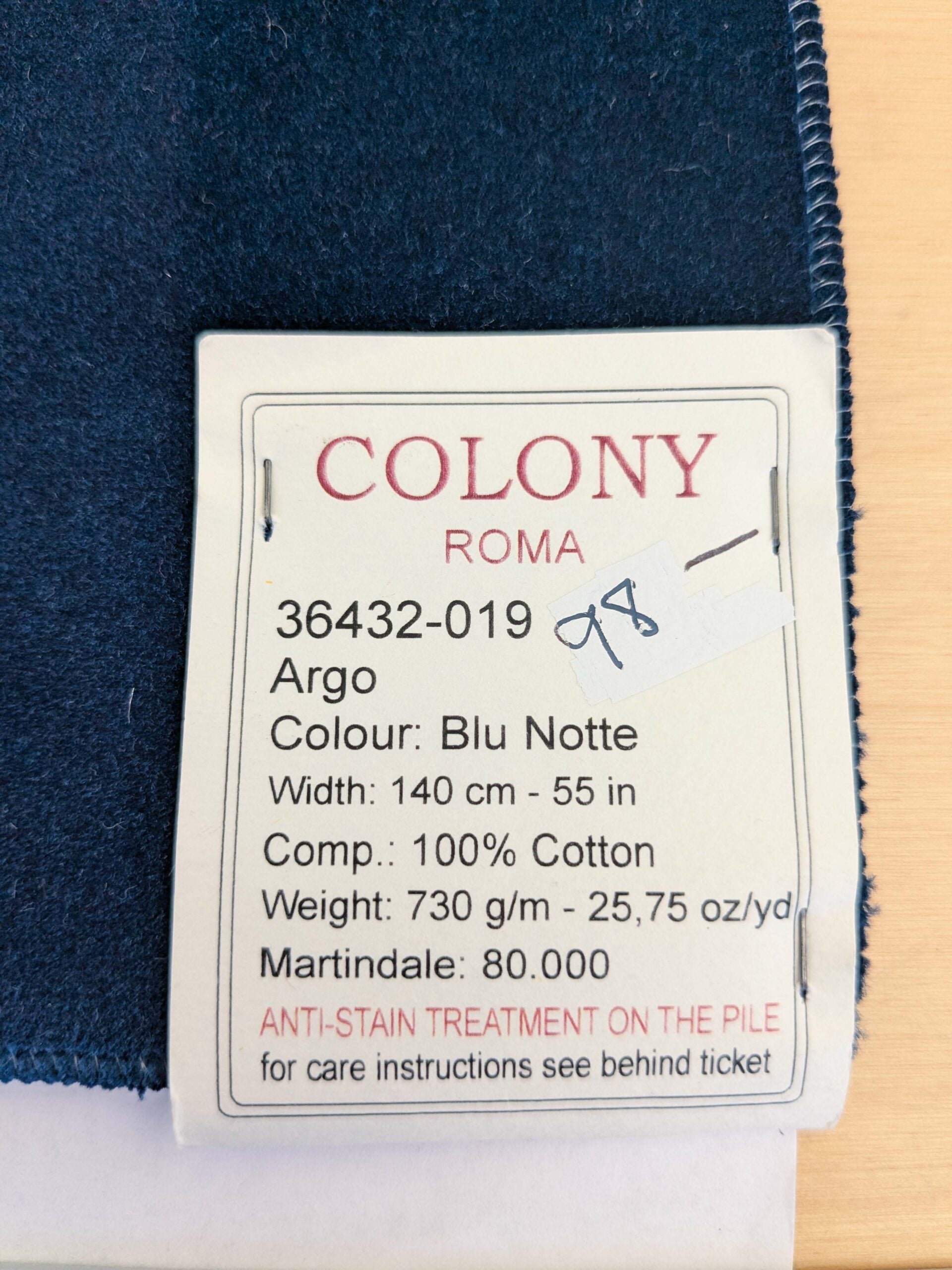 41 EV50 26" x 27" Scalamandre Colony Roma Argo Blu Notte Cotton Velvet Solid Plain