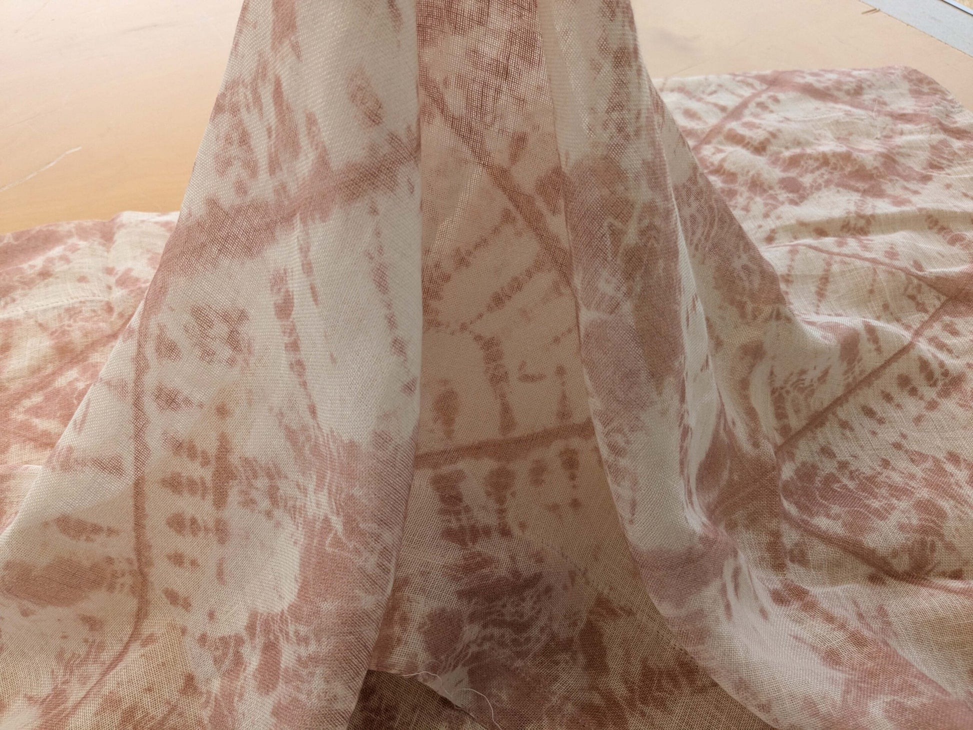 Itajime, printed in Spain, is a song on linen. Gorgeous texture for a scarf or garment! The light travels between the fiber and paint like magic. ...You can simply sew it together for a shawl, scarf or top.