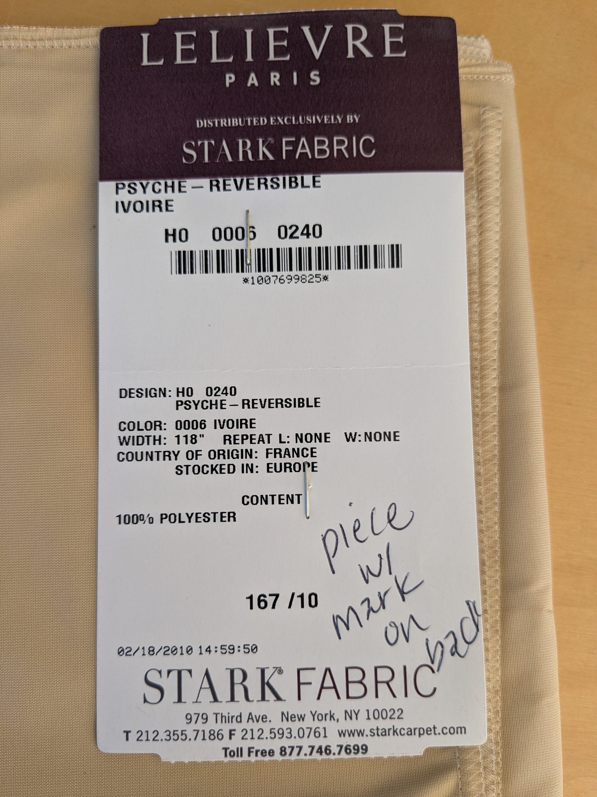 Fiber, repeat, width, weight, country of origin, WHOLESALE price/yard: