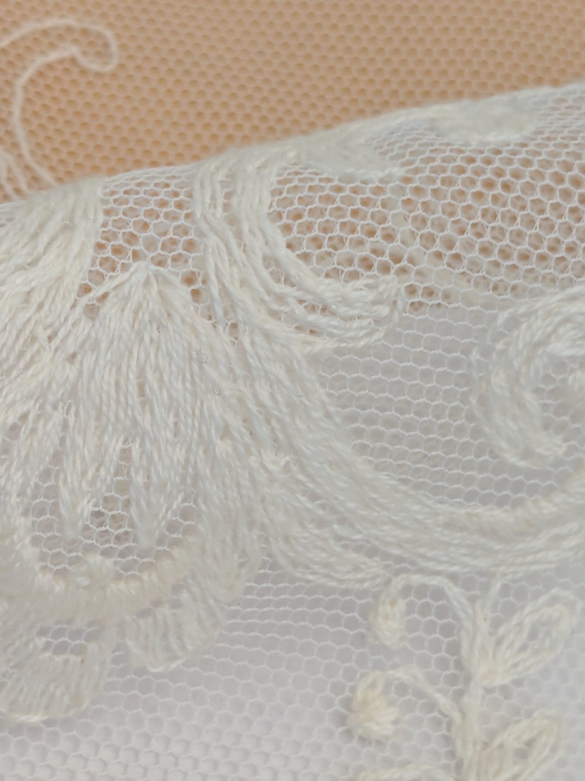 44 EV50 26" x 27" Scalamandre Old World Weavers Charolais Sheer Ecru Matte Embroidery Polyester White