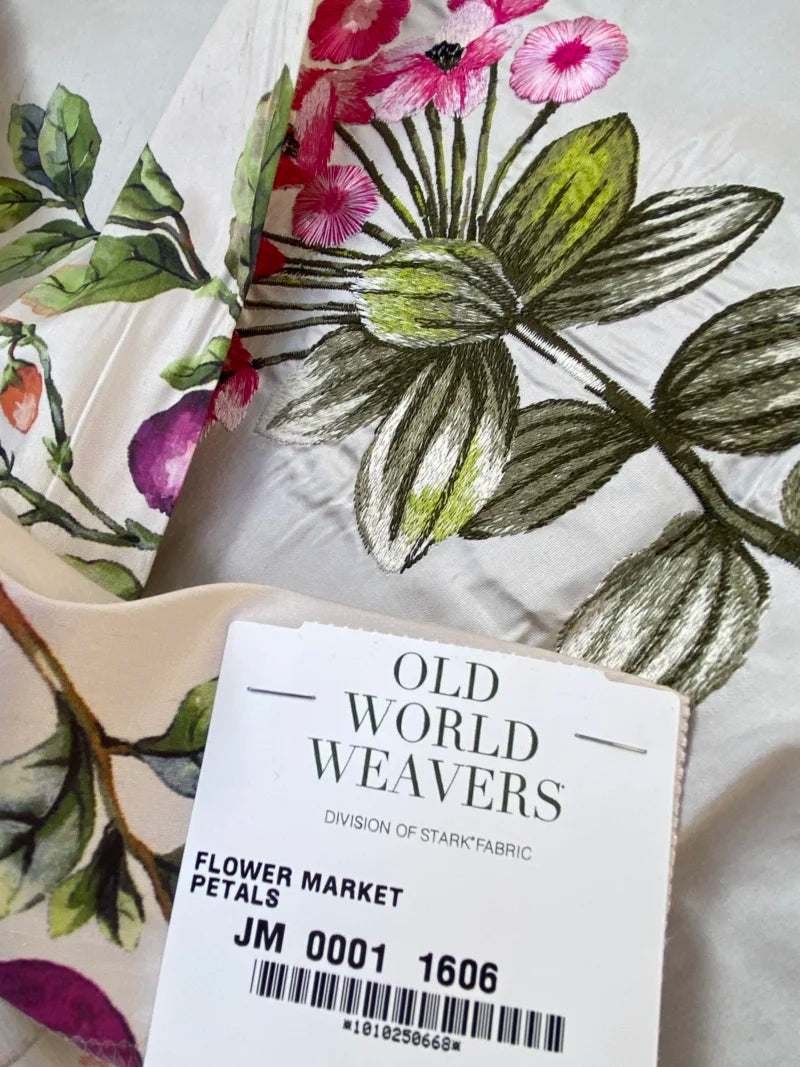 45 Berkbox72 Scalamandre Square Silk Flower Market Petals Floral Print Embroidery Pink Red Purple Green 1yd x 27" MSRP USD 512/y
