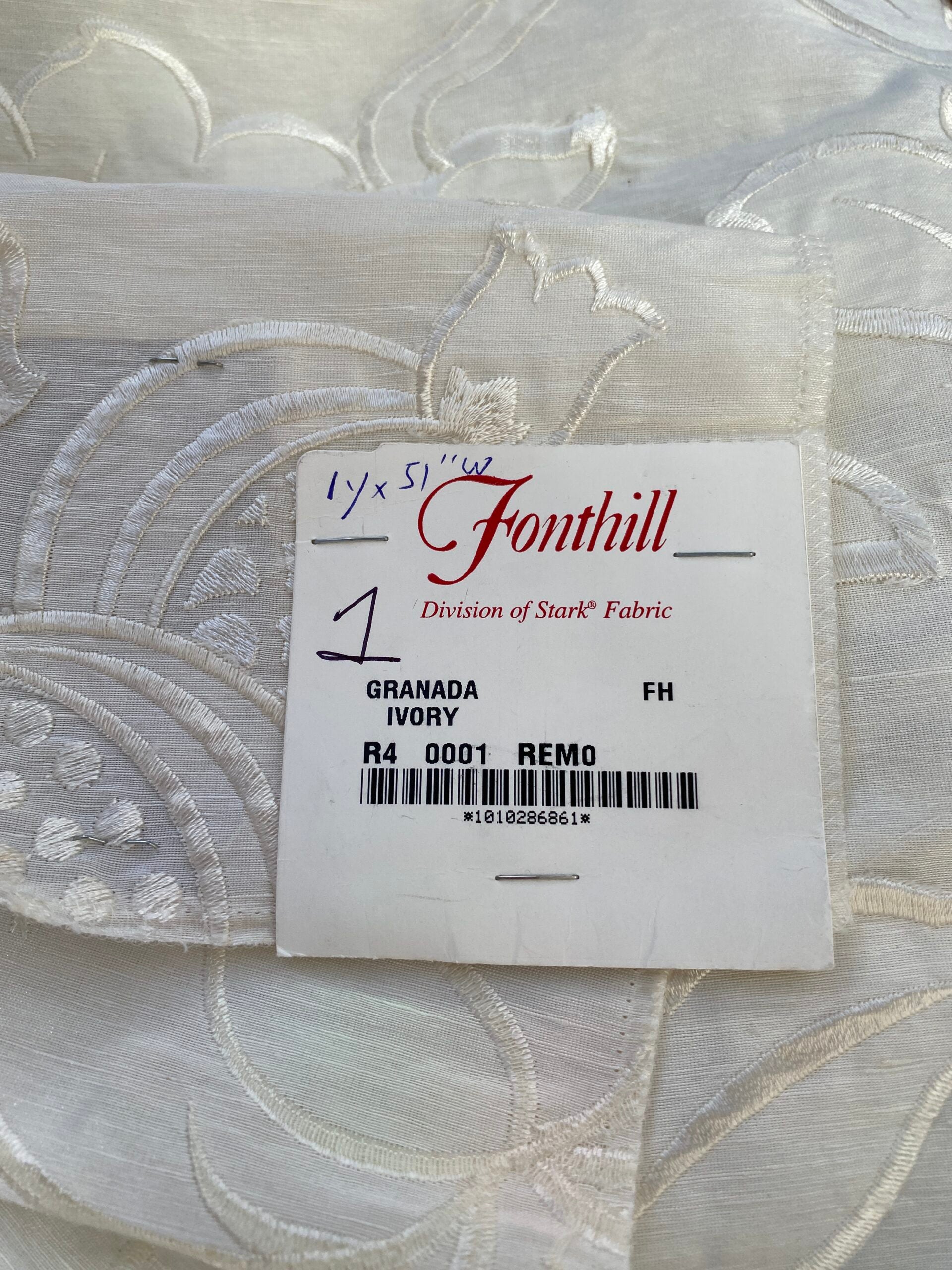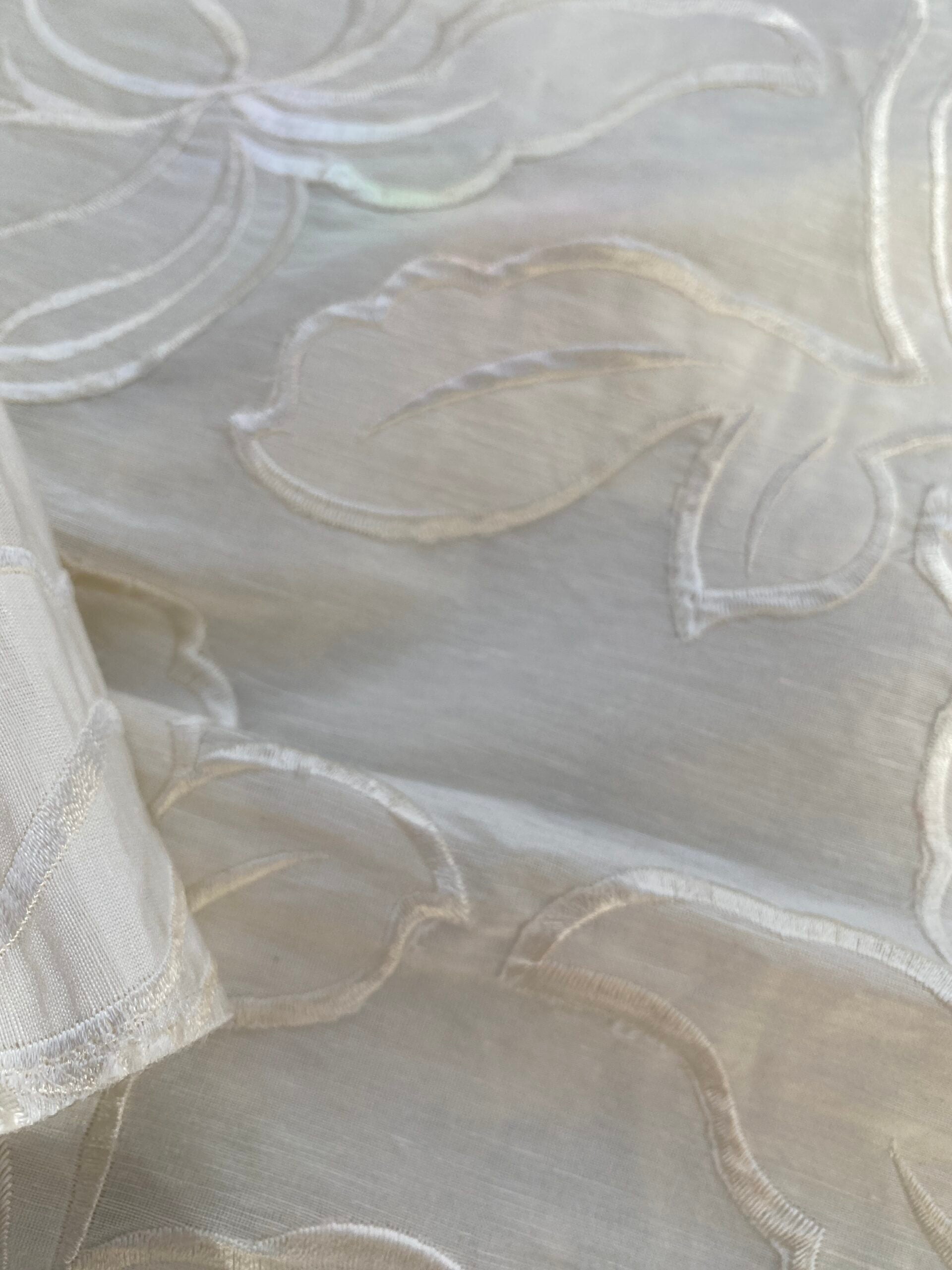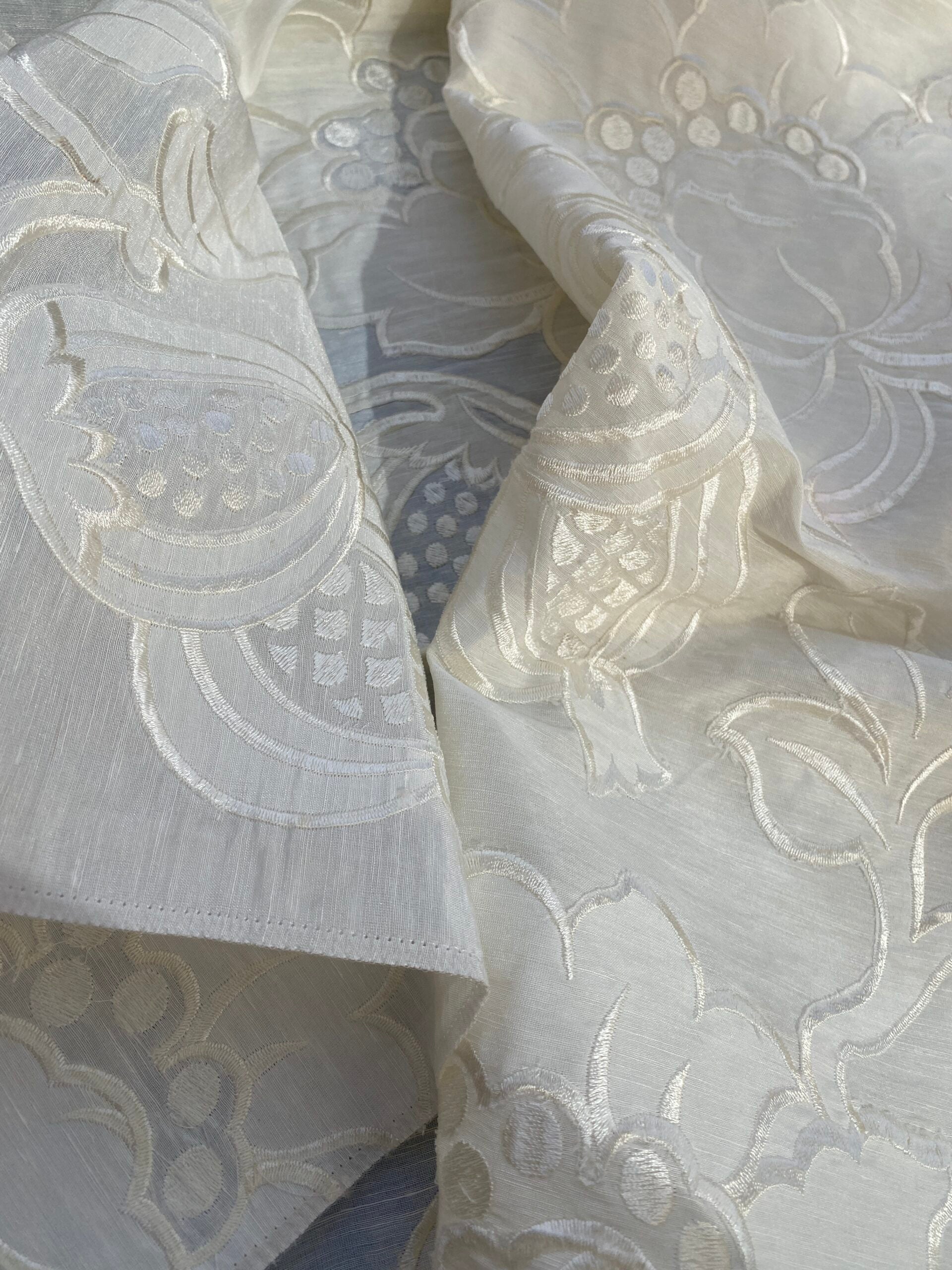 1 Berkbox76 Square Embroidery by Fonthill Granada Ivory White Peony Pomegranate Embroidery Linen Sheer 1yd X 51"MSRP USD 230y