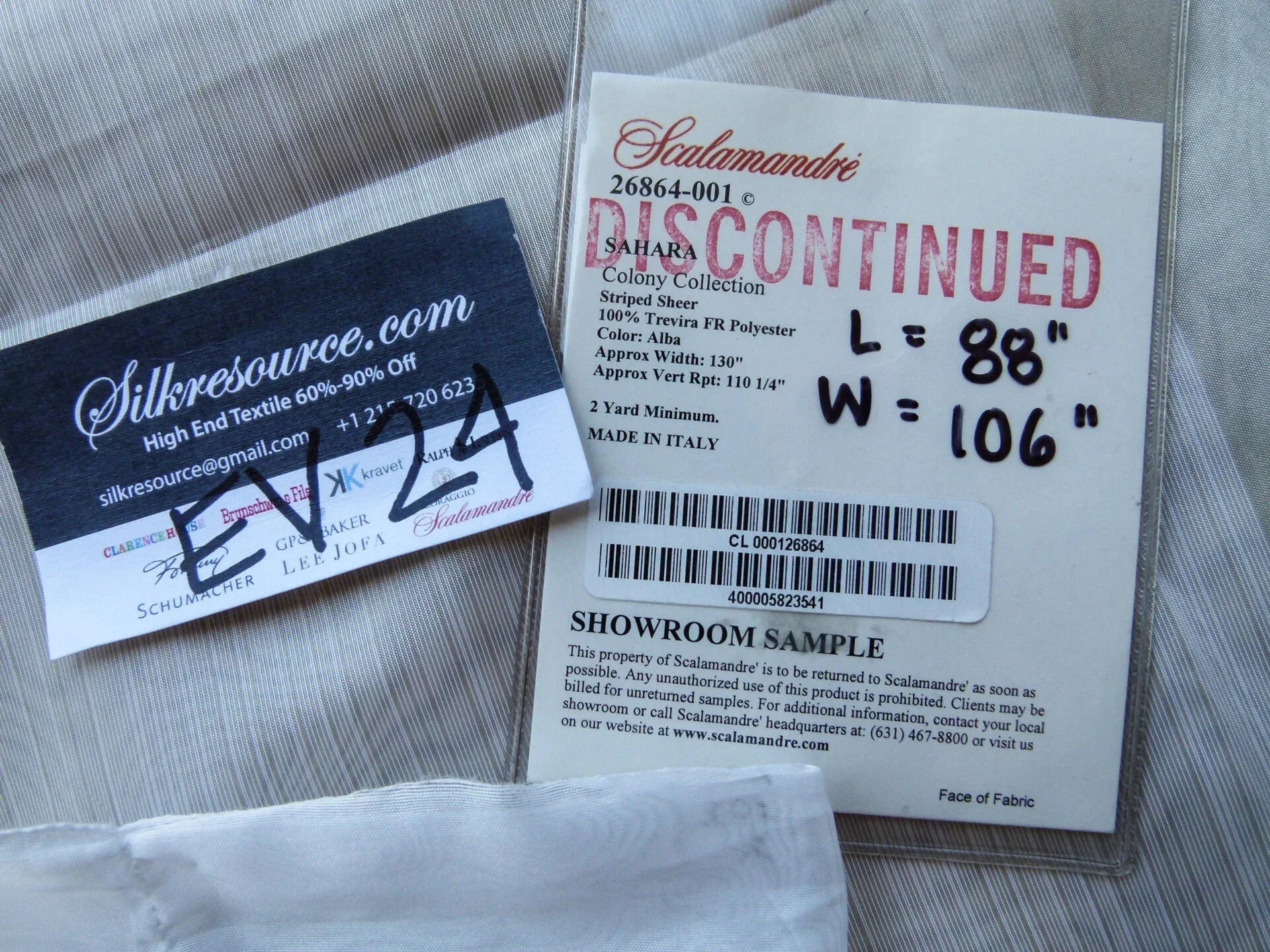45 EV24 88"x 106" Scalamandre Colony Collection SAHARA Alba Stripe Sheer 100% Trevira FR Polyester