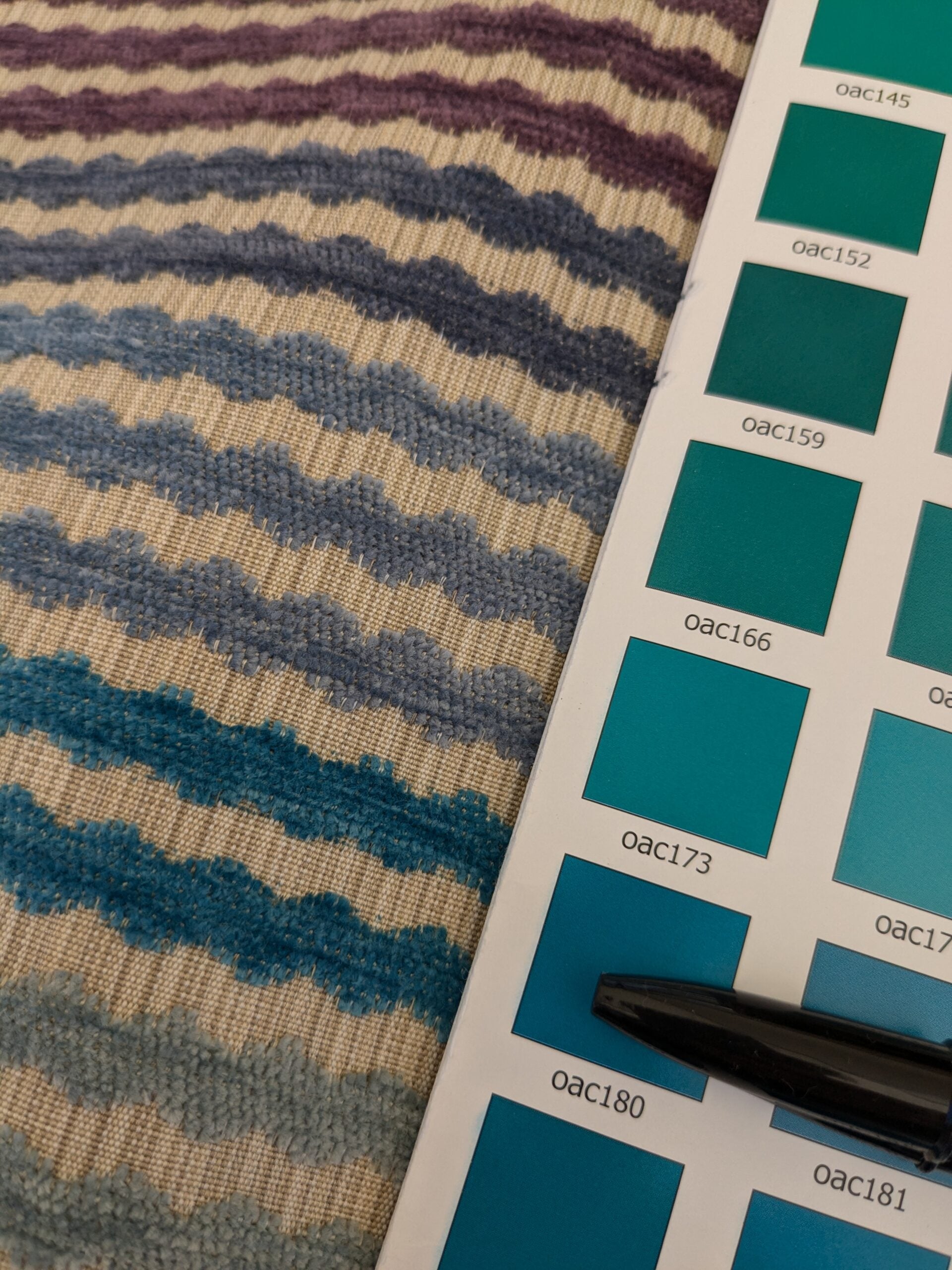 45 EV46 Velvet Square 27"x 29" Scalamandre Ole World Weavers Next Wave Peri Sky Chenille Stripe Beige Blue Brown