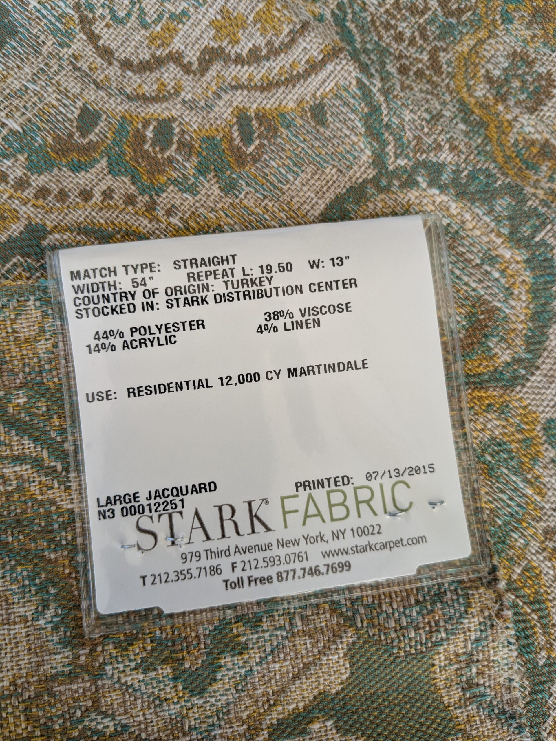 Fiber, repeat, width, weight, country of origin, WHOLESALE price/yard: