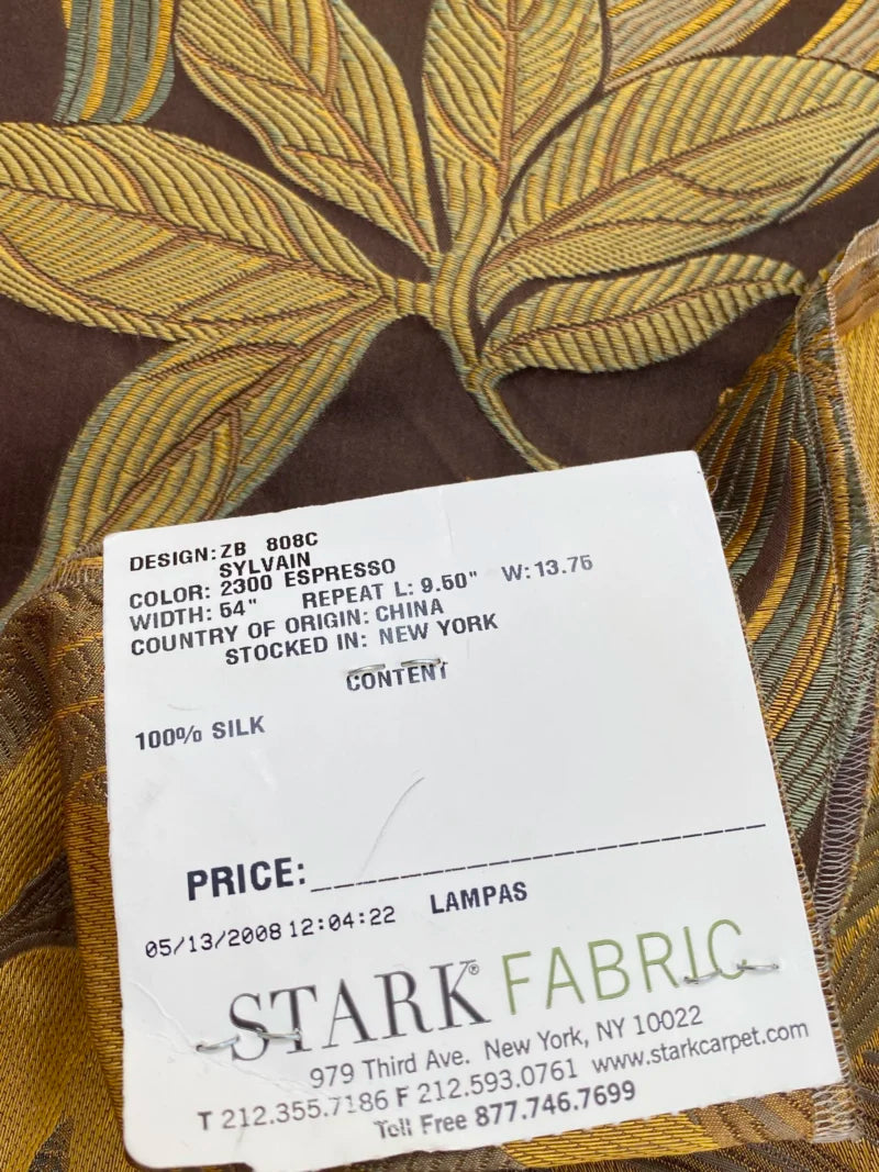 47 Berkbox72 Scalamandre Old World Weavers Square Silk Sylvain Espresso Dark Brown Damask Tropical Foliage Monstera MSRP USD 300+/Y Piece B