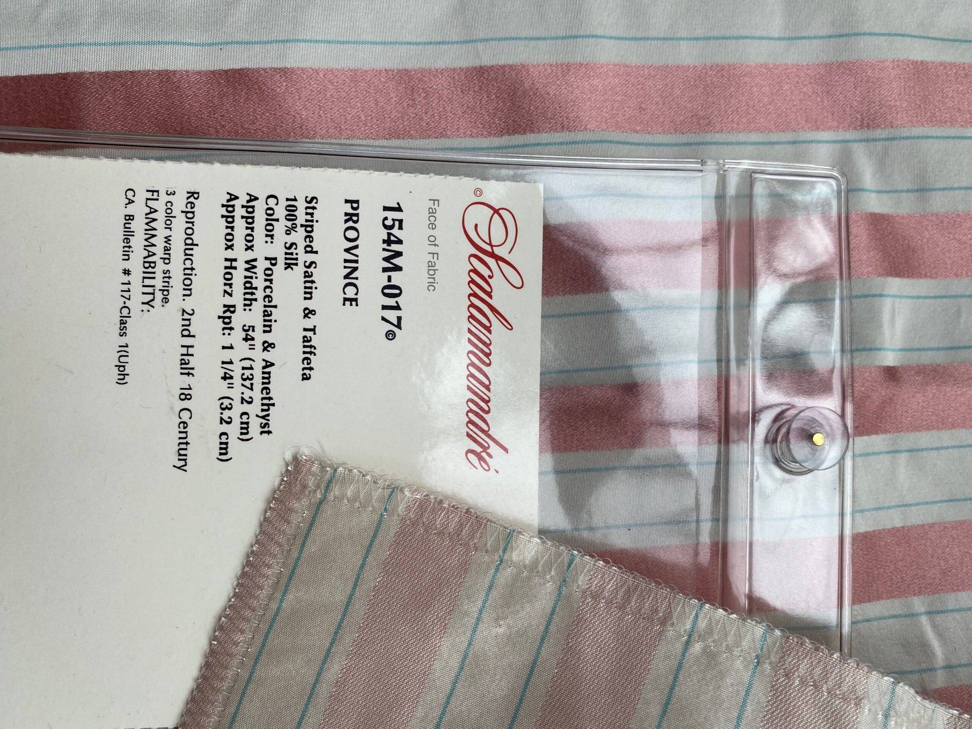 47 Berkbox99 Square Silk Satin by Scalamandre Province Stripped Satin and Taffeta Porcelain and Amethyst Pink White MSRP USD 300+/y