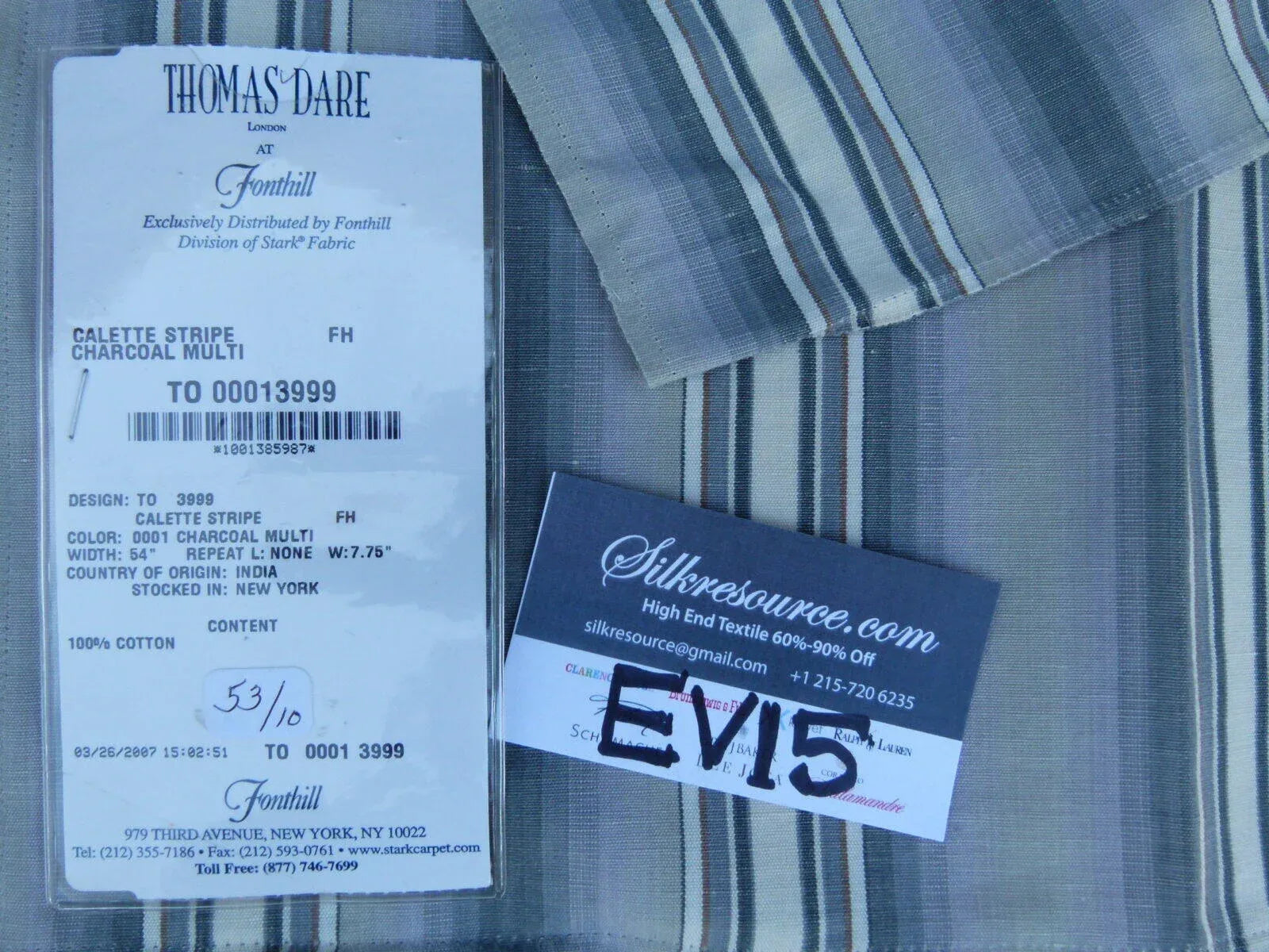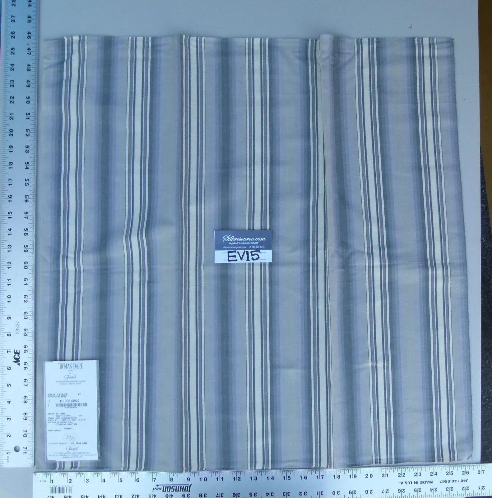 48 Ev15 Scalamandre Showroom Sample Square Calette Stripe Charcoal Multi Grey Cotton