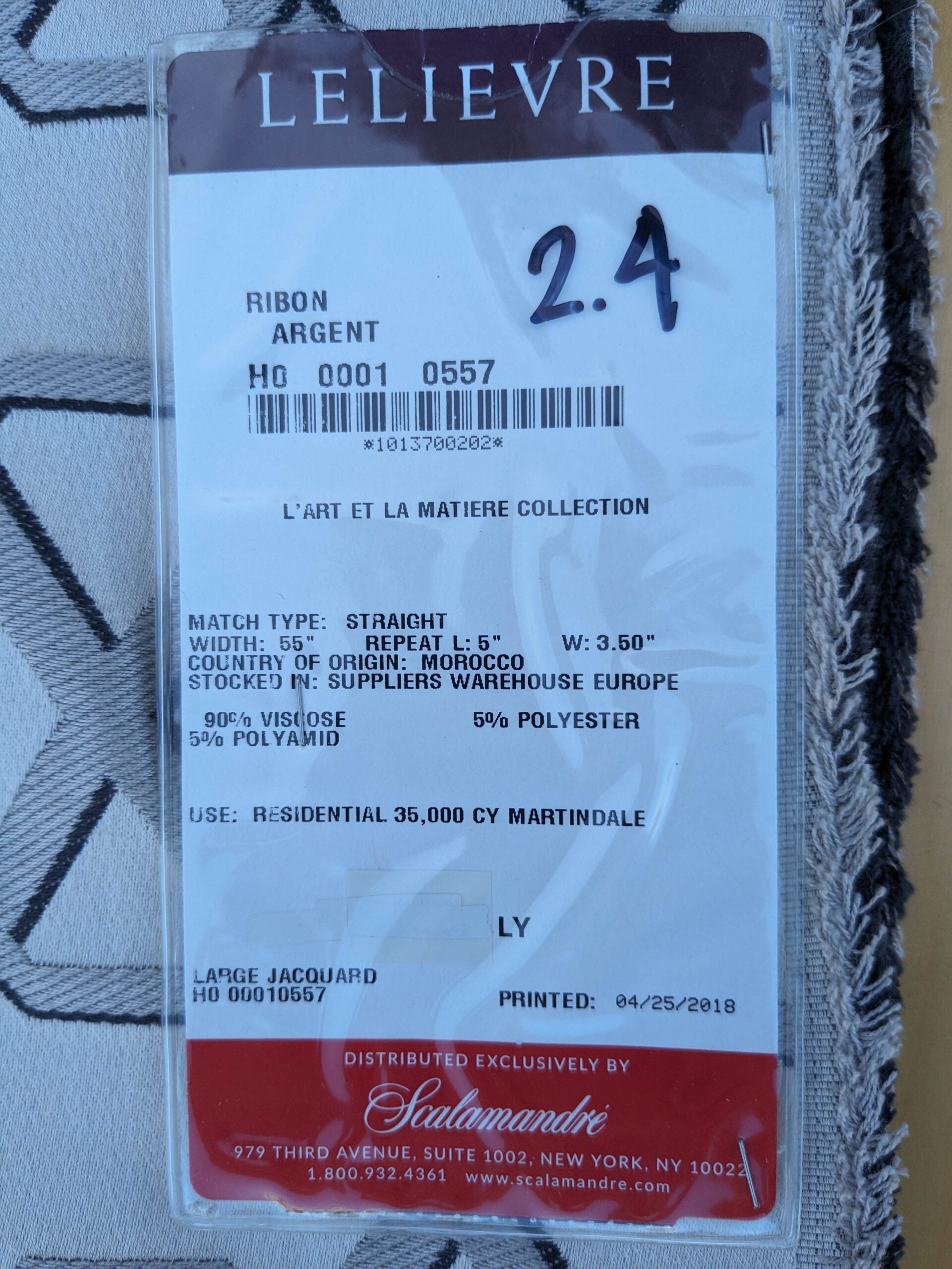 48 EV35 Length 2.4y Lelievre Ribon Argent Black Beige Jacquard Diamond Ogee Fretwork Lattice Large Jacquard MSRP USD 300+/y