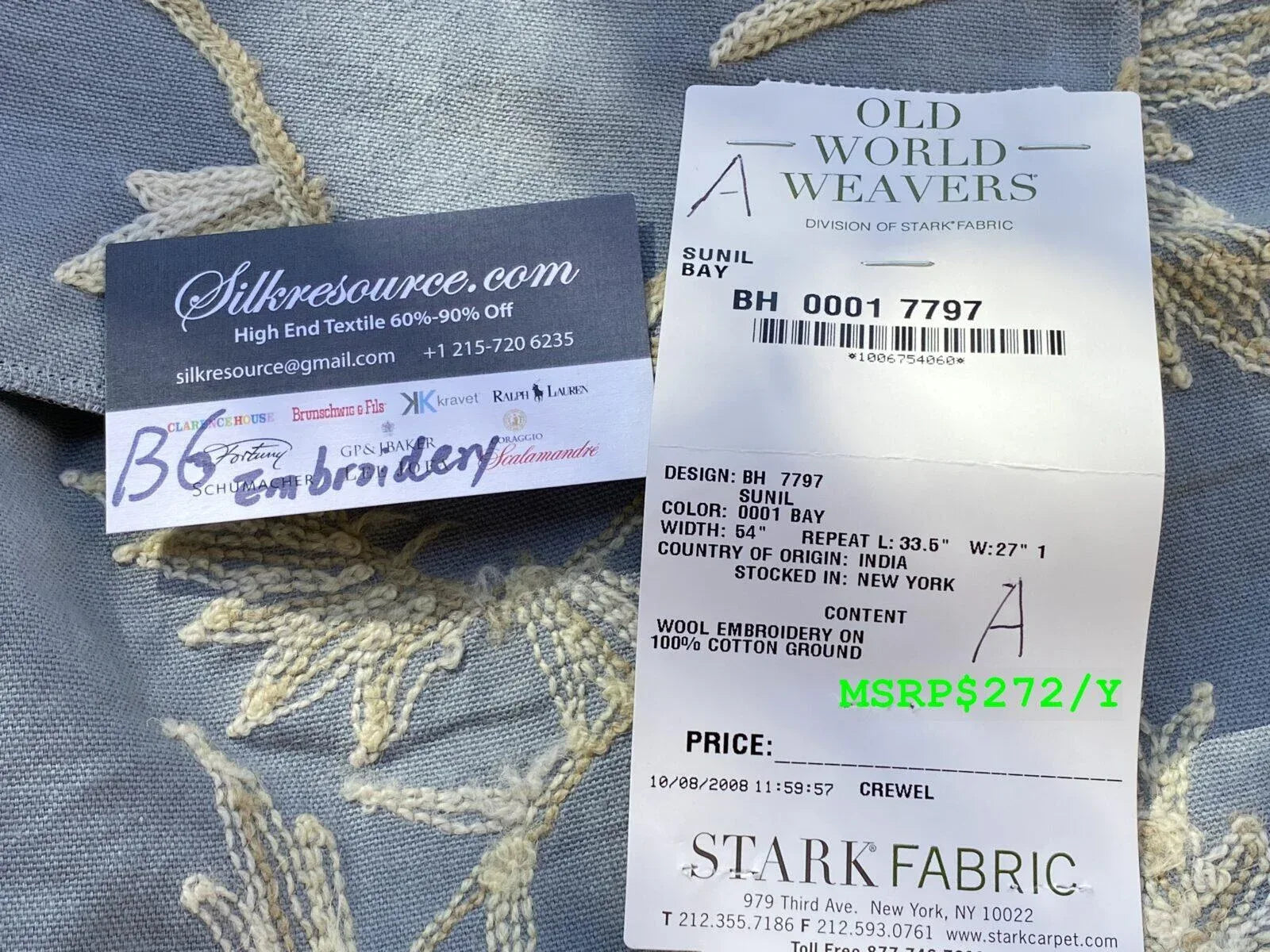 4a Berkbox6 Scalamandre Embroidery Square Sunil Bay Blue Crewel Wool On Cotton MSRP USD 272