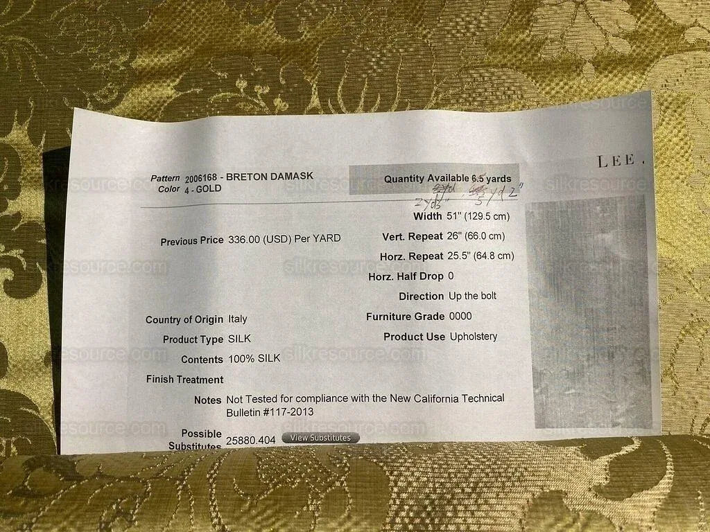 By yard Lee Jofa Silk Breton Renaissance Damask Pure Gold Copper MSRP$339/yd