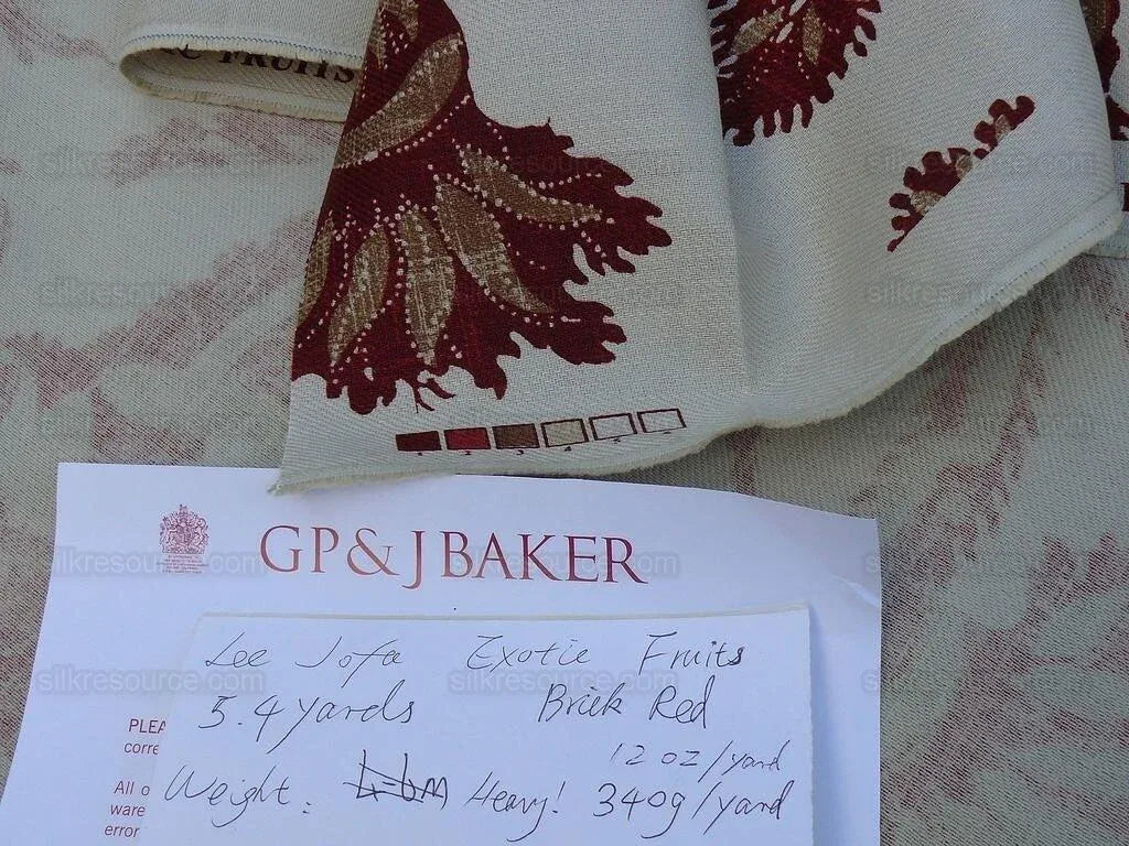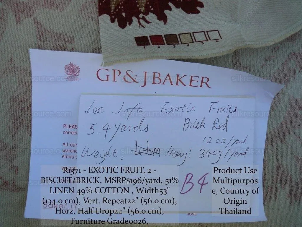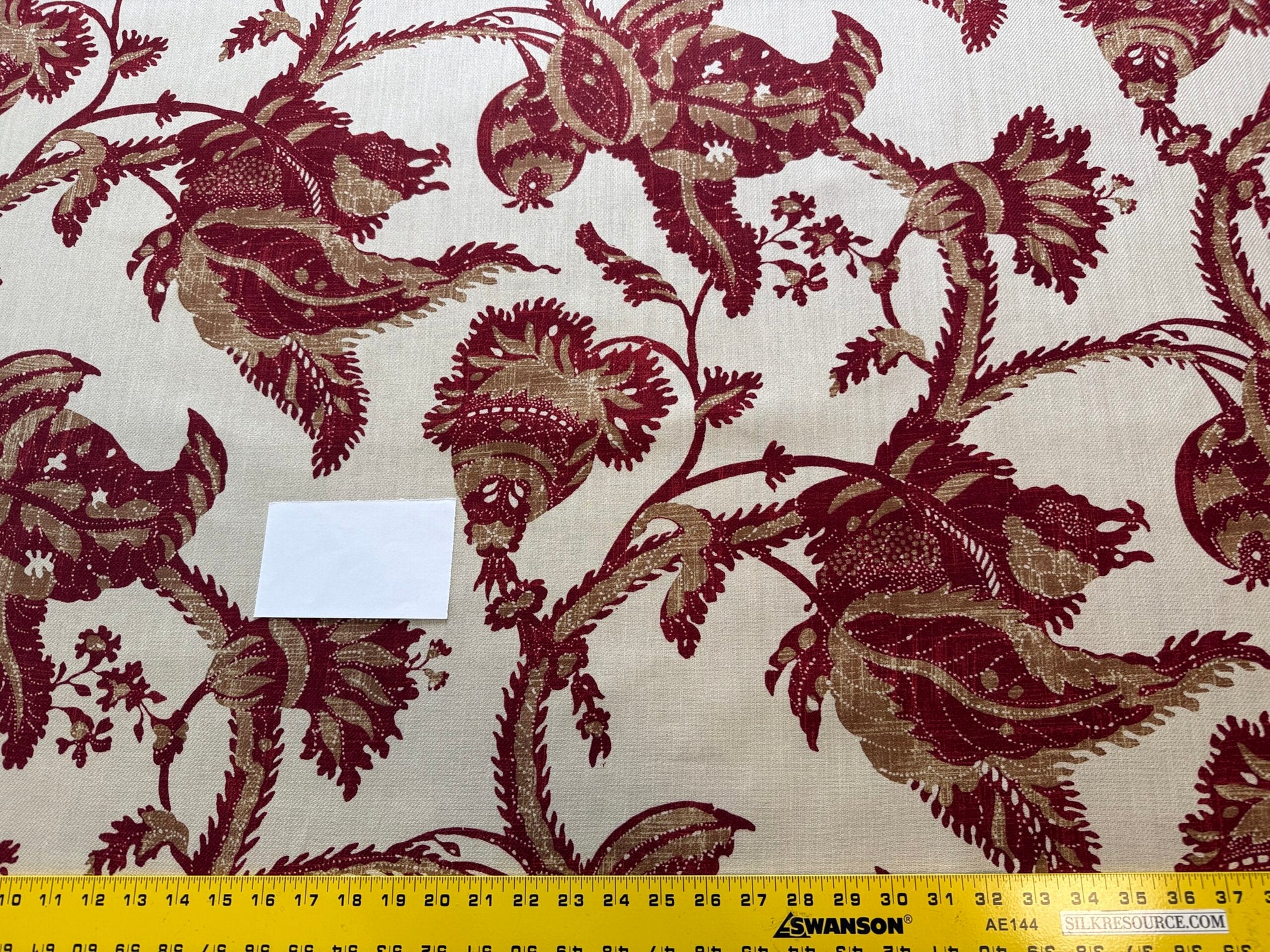 By Yd Lee Jofa Exotic Fruits Brick Biscuit Red on White Pom Thistle Vine Tropical Large Linen Print MSRP USD 196/Y