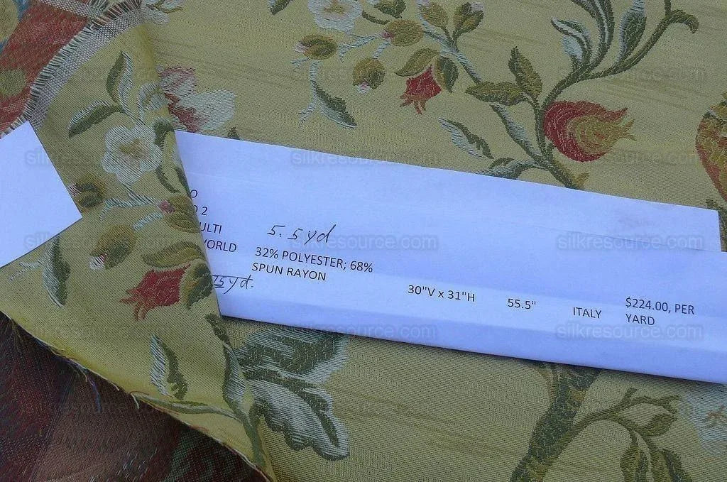 Pomegranate is the symbol of life, vigor and rebirth. Modern research also finds it full of anti-aging agent and nutrition. Magnificent, imaginative, colorful, mesmerizing... Designer: Scalamandre / Old World Weavers. Authentic Scalamandre/Old World Weavers. Has labels from Scalamandre. MSRP$224/yard+tax (official number from Scalamandre). Romantic and detailed tree of life pattern. Color: Background is jasmine yellow-gold Pattern in red, orange, gold, bright blue, green, sage green, beige, white Weight: Heavy weight and durable. About 1lb per yard. Our price is way below wholesale! Drapery, upholstery, bedding, over-the-top wallcovering! Total available: see beginning of listing.