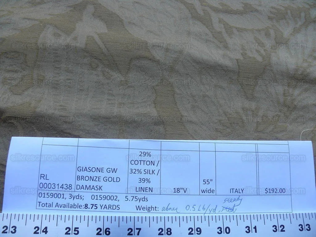 5.75+3y Old World Weavers Giasone Bronze Silk Damask Nautical