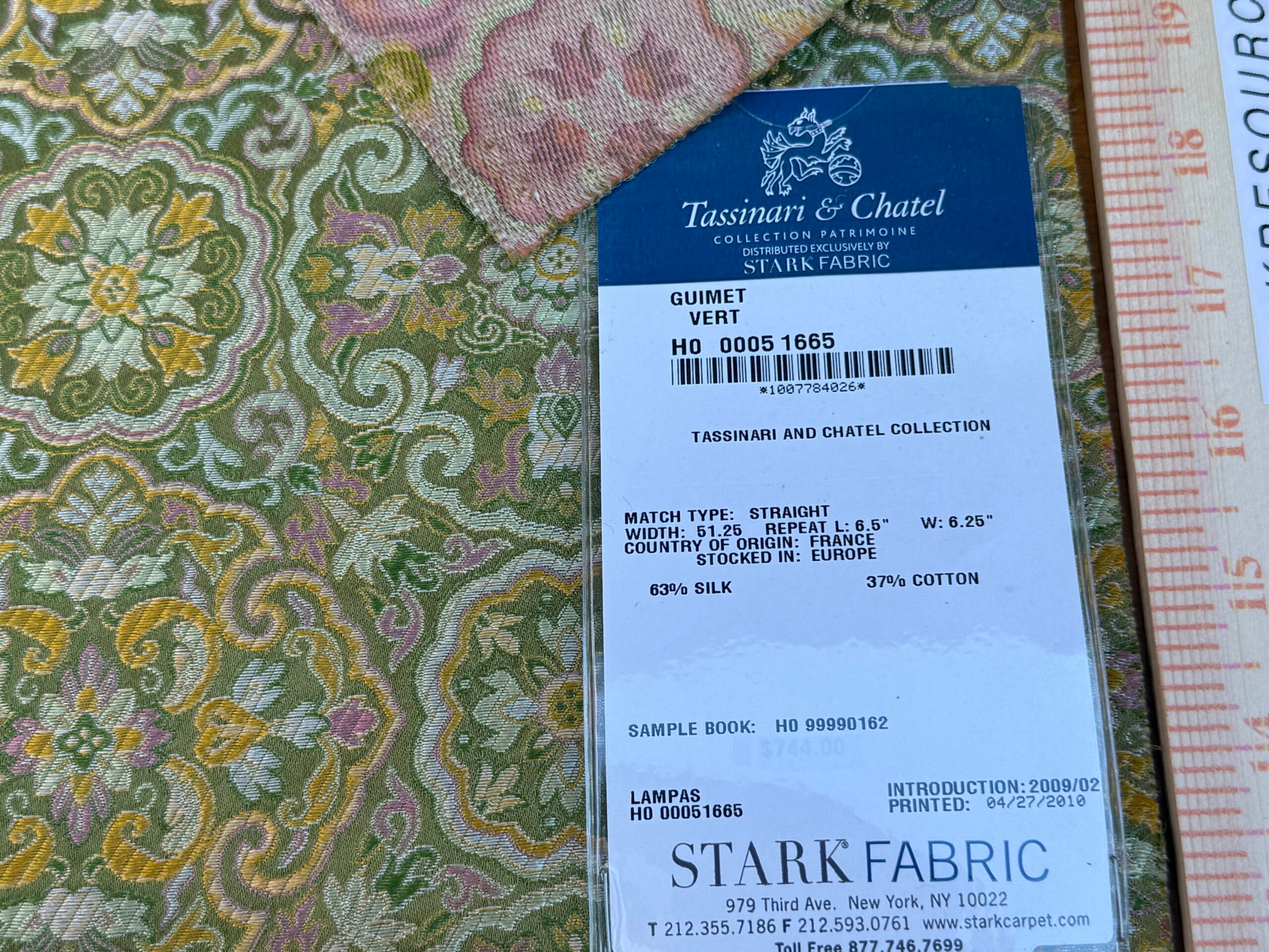 5 Berkbox106 25" x 24" Square Scalamandre Tassinari & Chatel Guimet Vert Green Silk Lampas Floral Medallion Historic MSRP USD2196