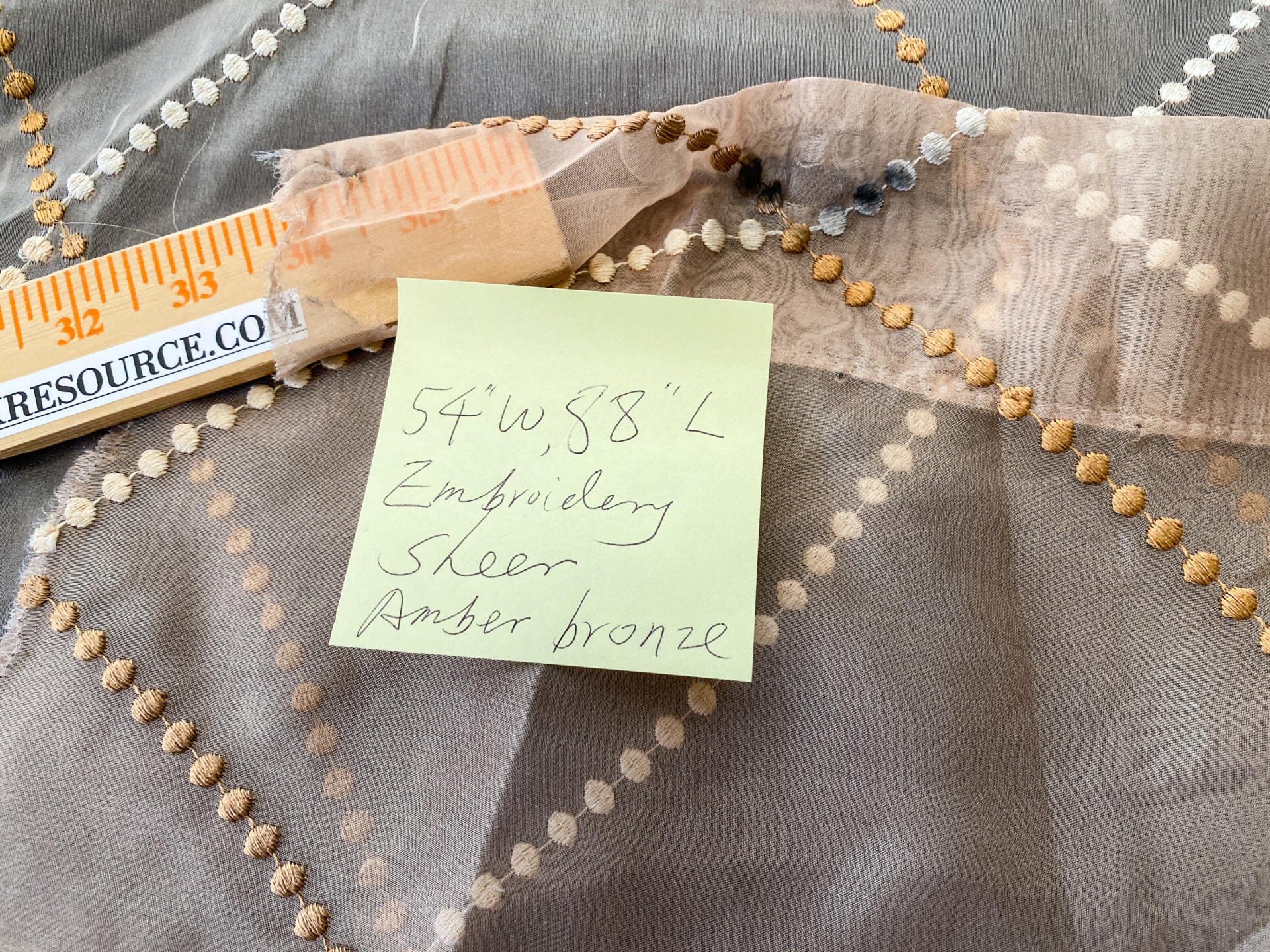 7 Berkbox64 Finished Drapery 2.4yard Scalamandre Embroidery Sheer Amber Bronze