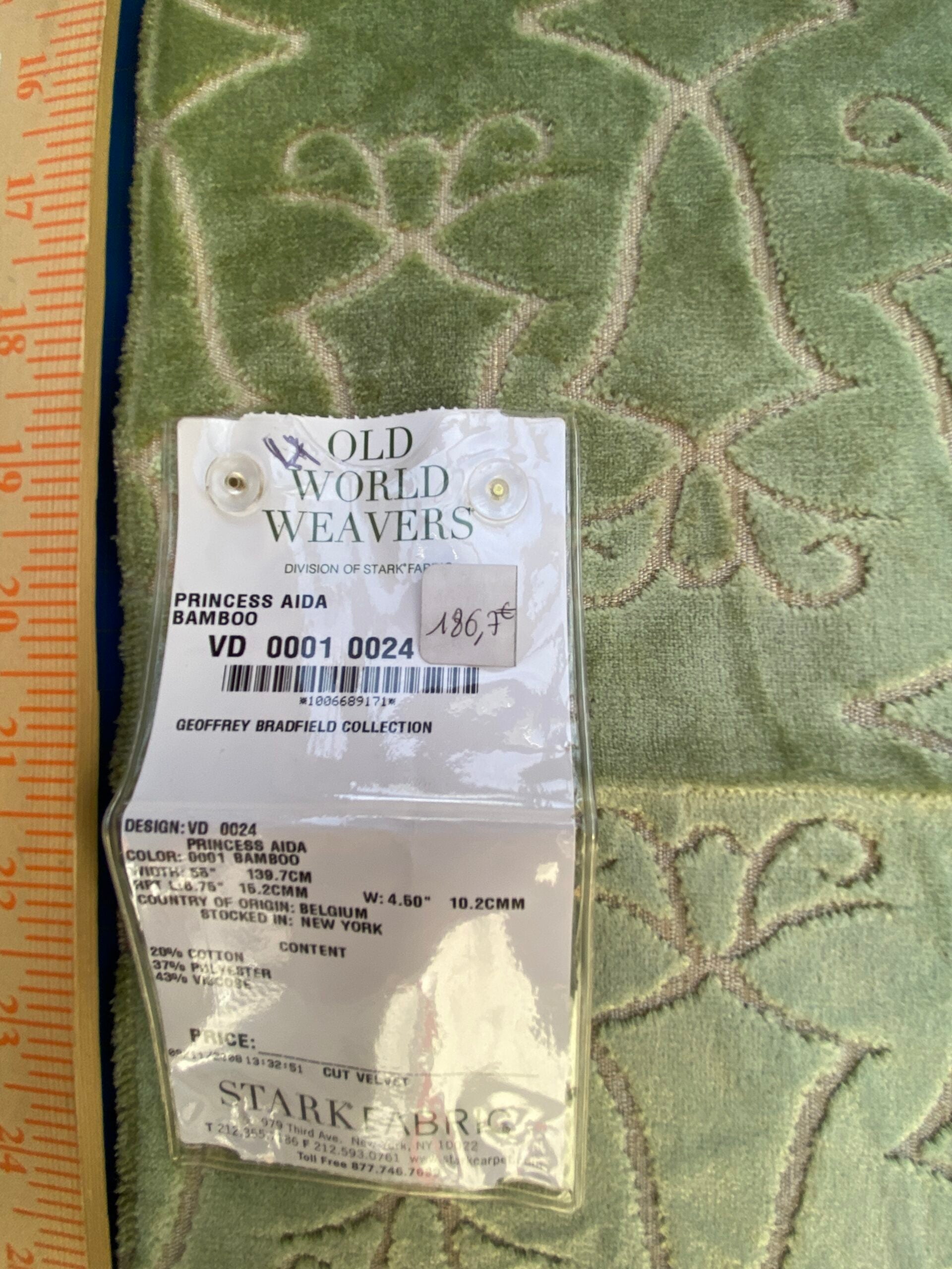 5 Berkbox74 Square Velvet by Old World Weavers Princess Aida Bamboo Green Cut Velvet Silky MSRP USD 265/Y