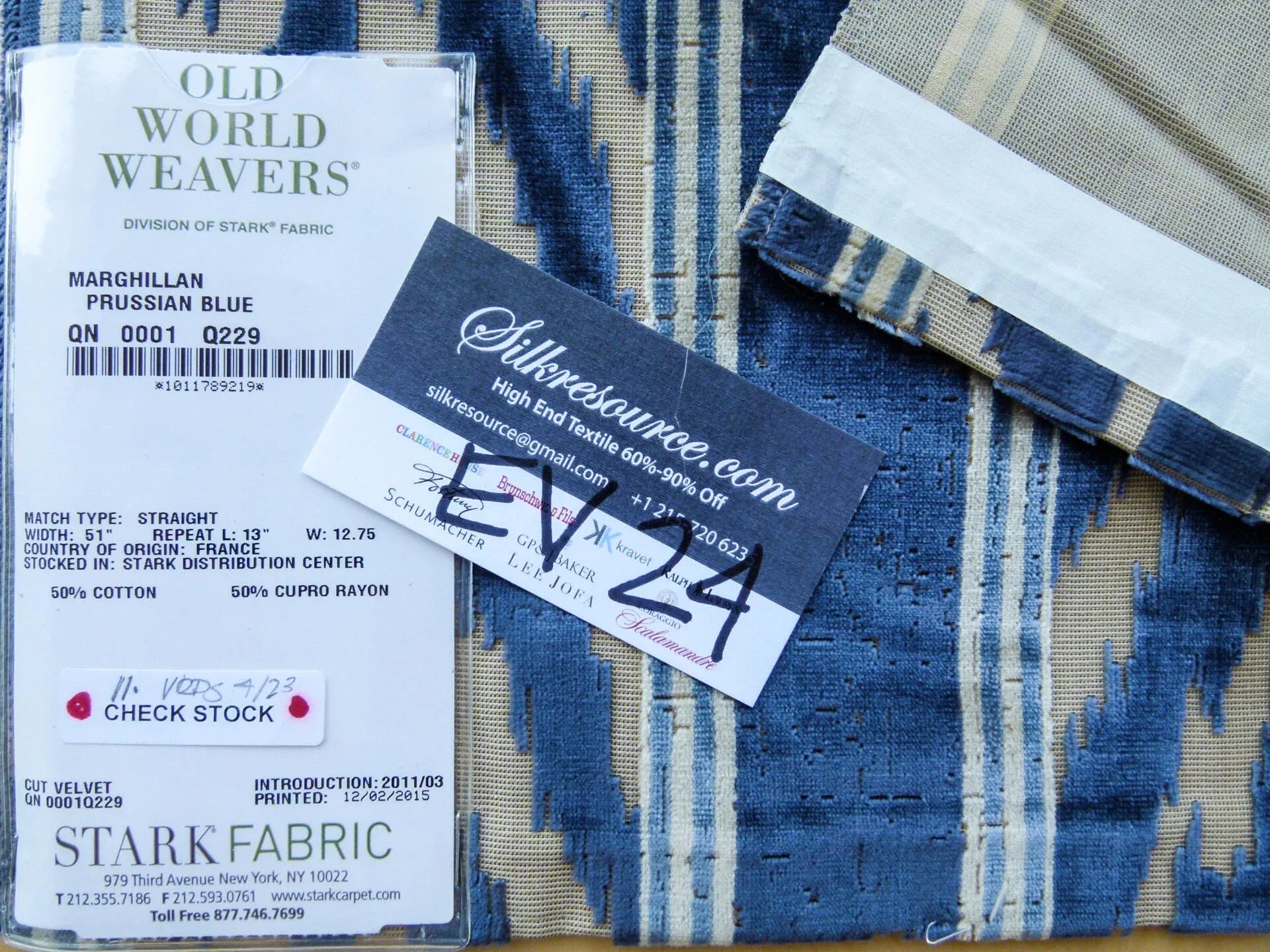 5 EV24 27"x25" Scalamandre MARGHILLAN PRUSSIAN BLUE Cut Velvet Blue