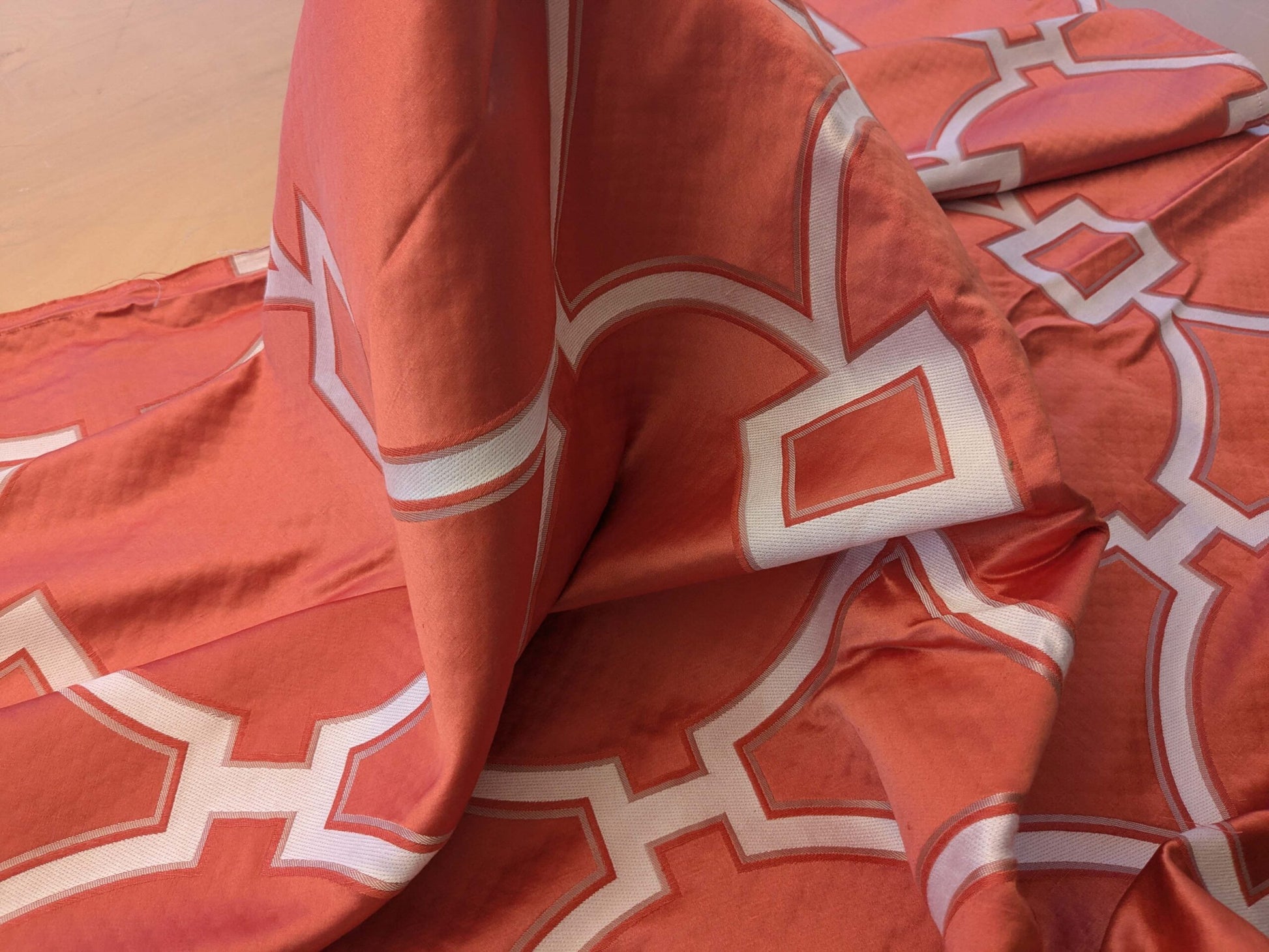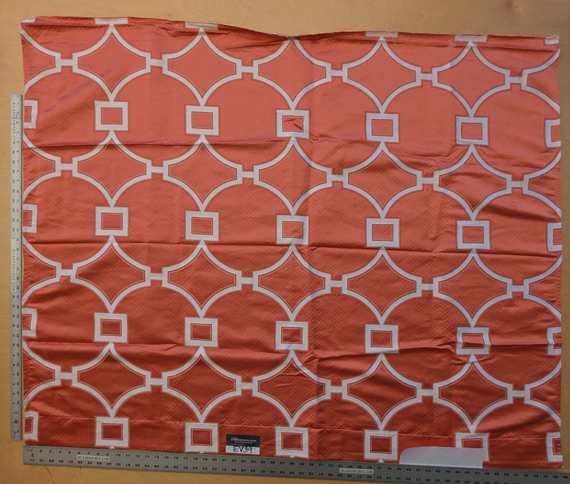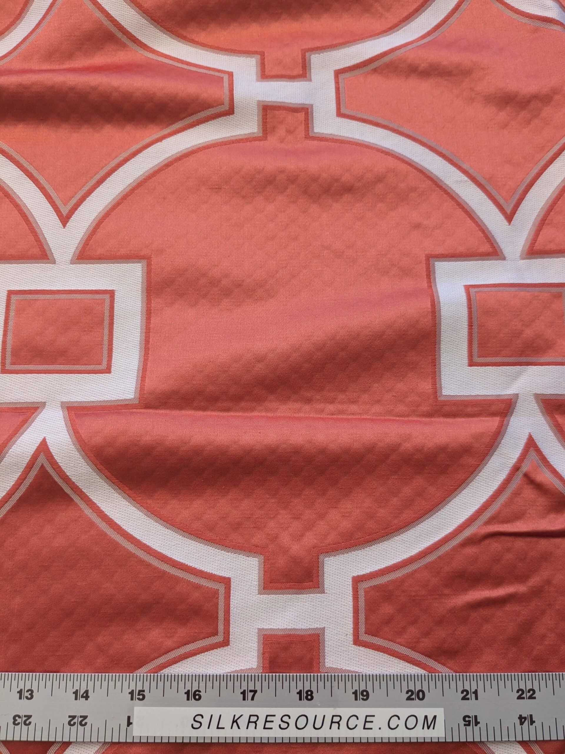 5 EV39 Scalamandre Circle Fret Coral Red White Jacquard Fretwork Lattice MSRP USD264/y 1.2y