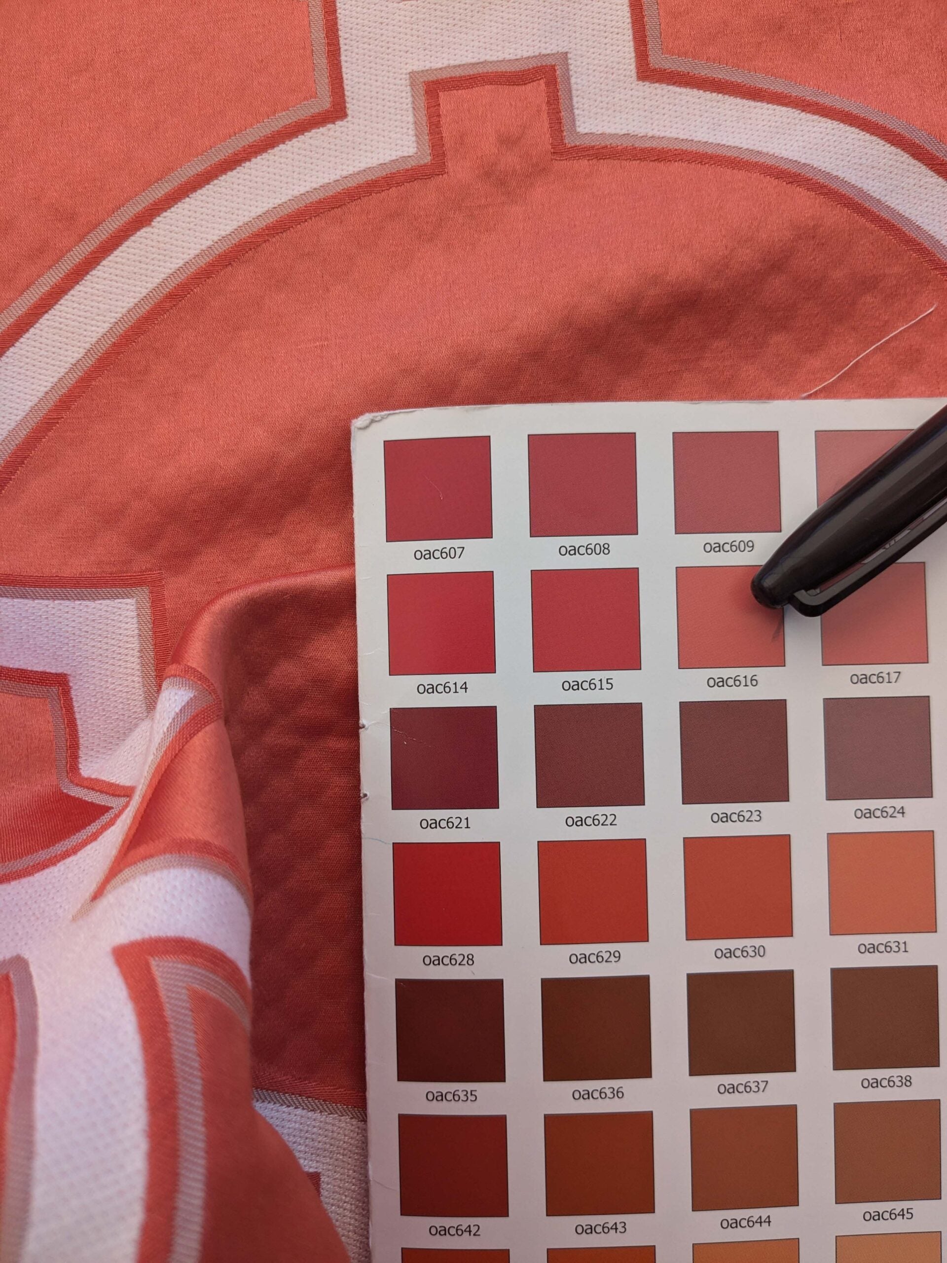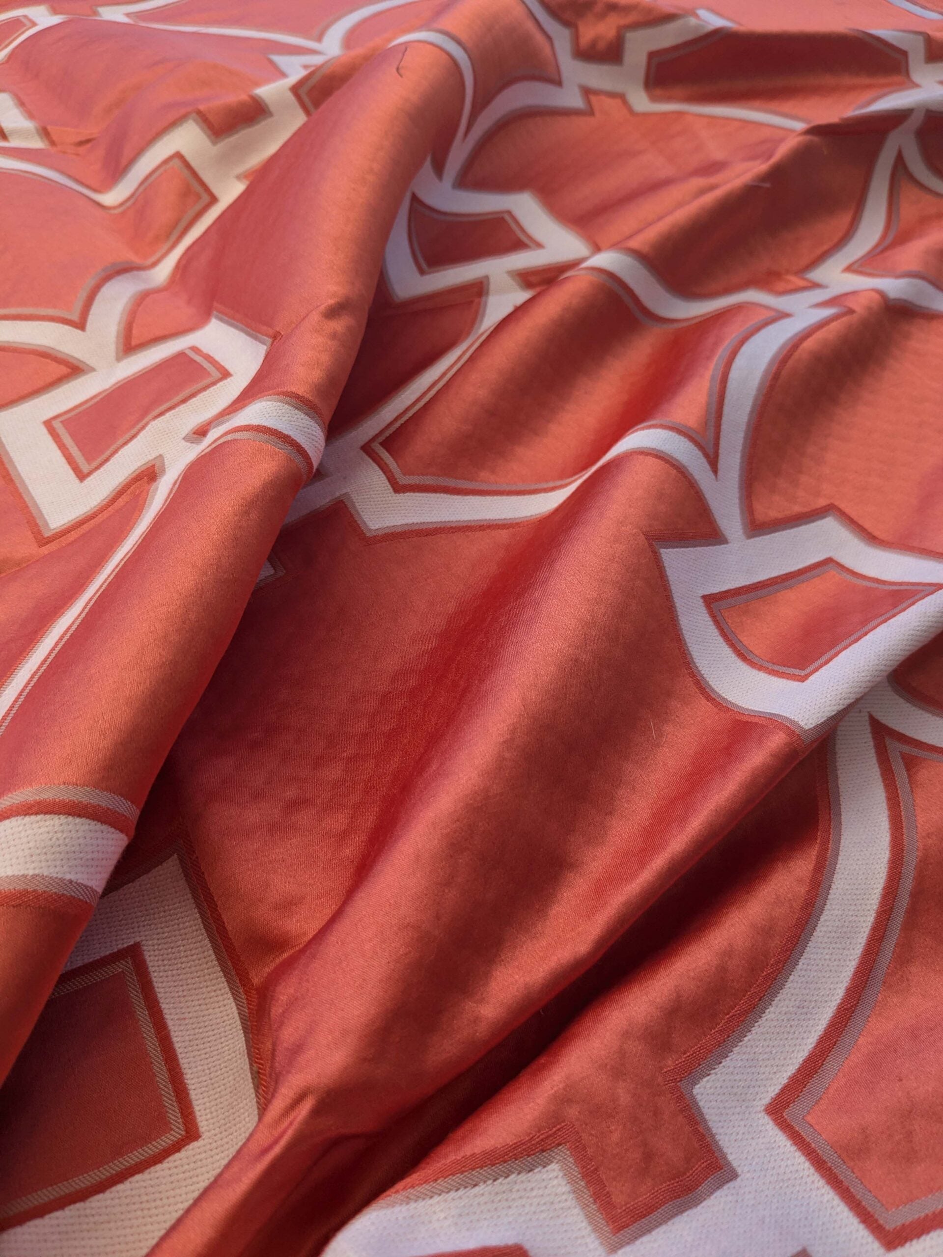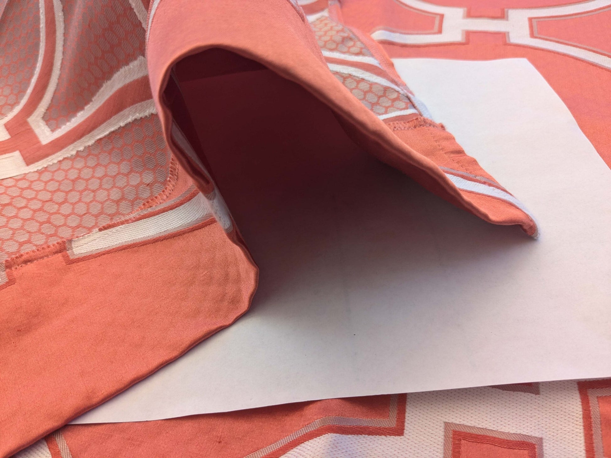 5 EV39 Scalamandre Circle Fret Coral Red White Jacquard Fretwork Lattice MSRP USD264/y 1.2y